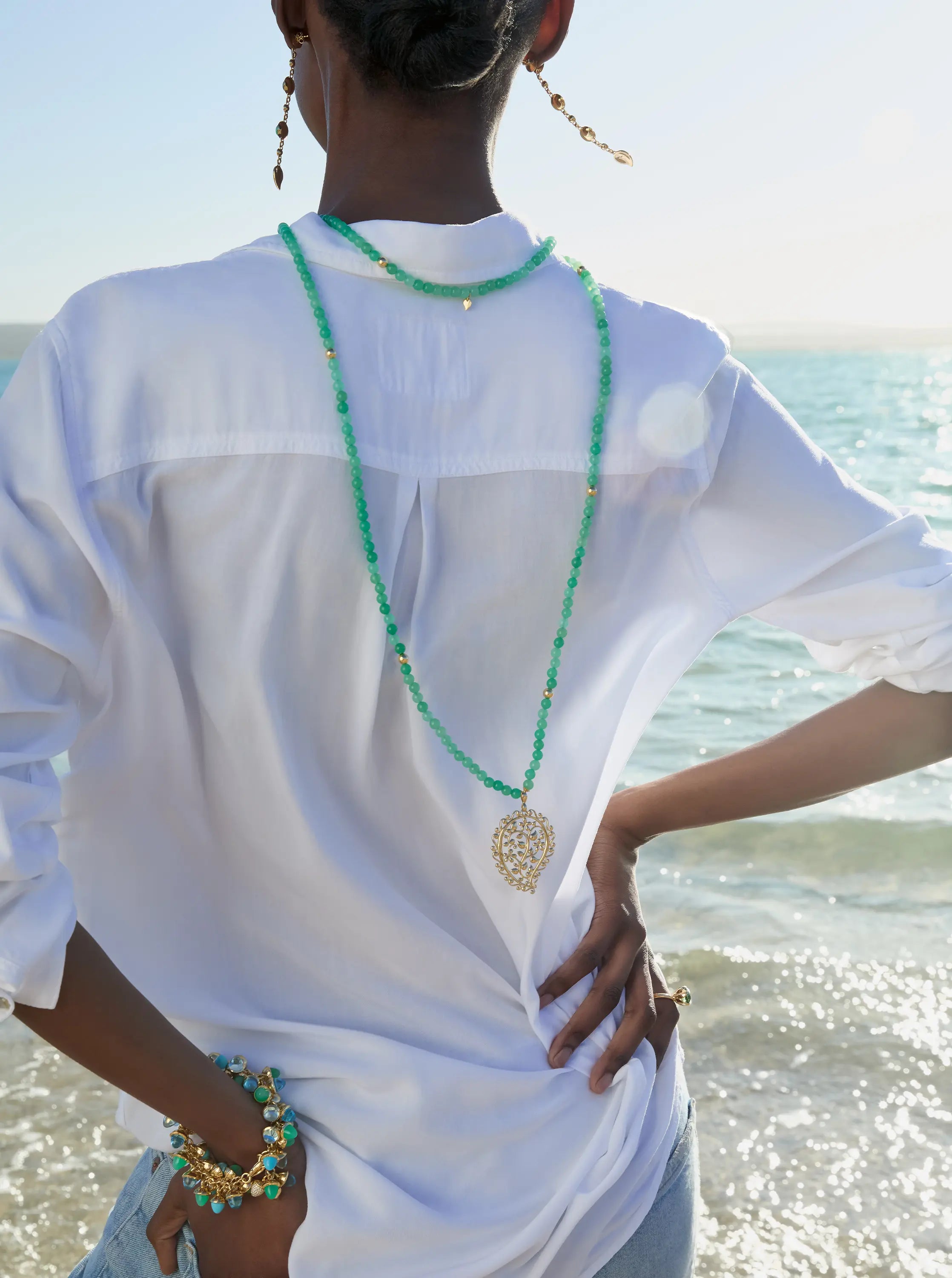 Refreshingly pretty, beads of polished African Chrysoprase adorn these special edition pieces, available in extended lengths for styling versatility.