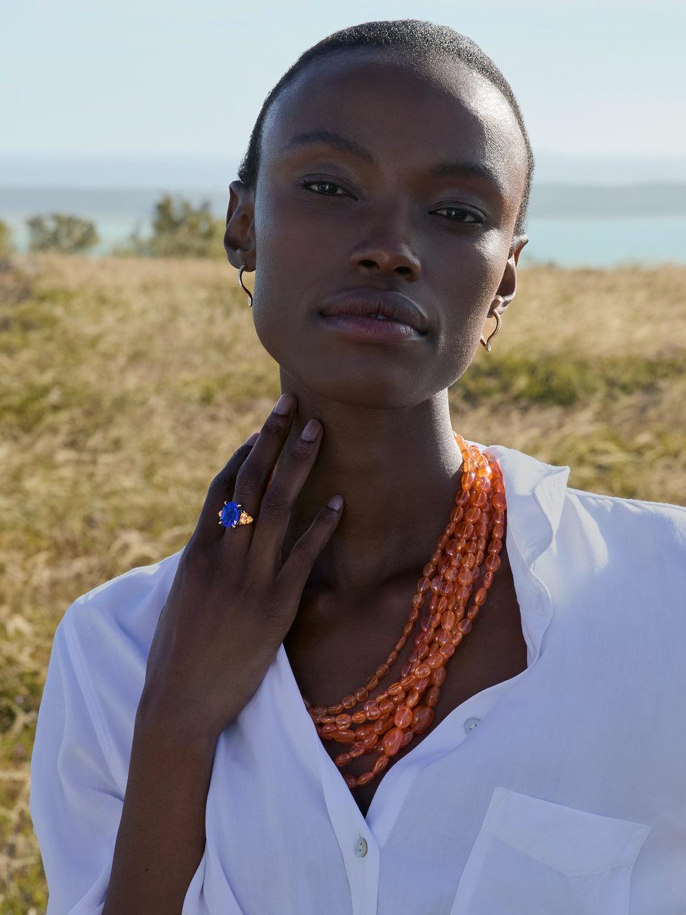 Höchster Tragekomfort und maximale Wirkung: Die weiche Fassung des CUSHION Rings, die in eine elegant zulaufende Ringschiene übergeht, stellt den Edelstein – ob im Cushion- oder im Cabochon-Schliff – in den Mittelpunkt.