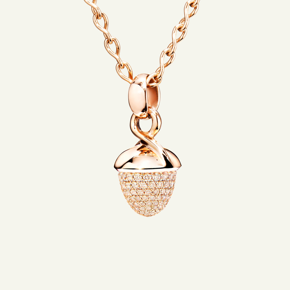 The iconic MIKADO Bouquet Pendant with Champagne Diamond Pavé shimmers with refined sparkle in the signature acorn shape, set in 18K gold. Designed to be worn your way, MIKADO Bouquet Pendants can be threaded onto a delicate choker-style chain, knotted onto a leather cord with other MIKADO pendants, and effortlessly integrated across the entire TAMARA COMOLLI collection. Ideal for mix & match styling, collecting, and gifting.