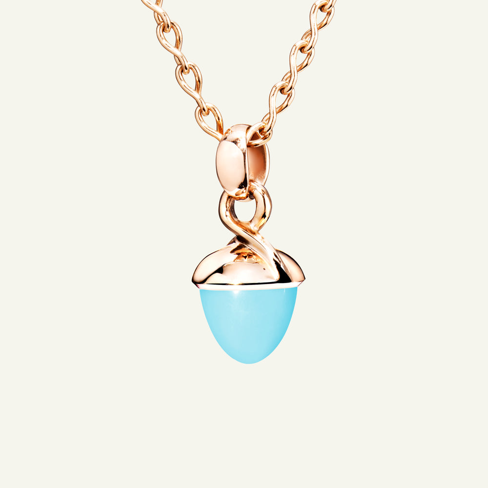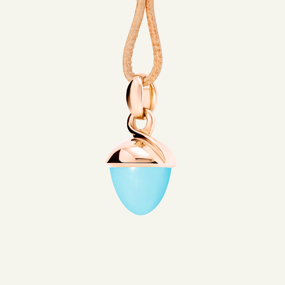 The iconic MIKADO Bouquet Pendant with Turquoise features a brilliant blue-green gemstone in the signature acorn shape, set in 18K gold. Designed to be worn your way, MIKADO Bouquet Pendants can be threaded onto a delicate choker-style chain, knotted onto a leather cord with other MIKADO pendants, and effortlessly integrated across the entire TAMARA COMOLLI collection. Ideal for mix & match styling, collecting, and gifting.