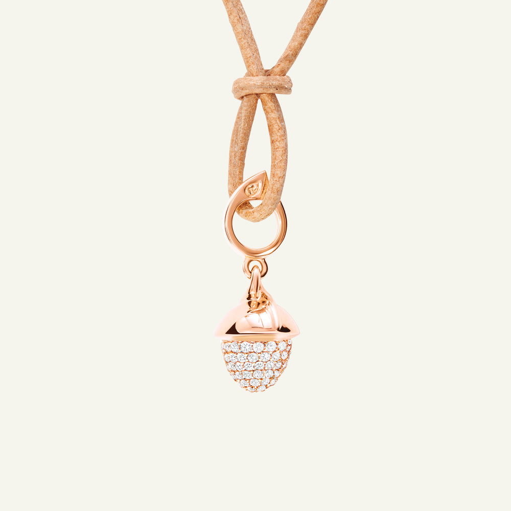The iconic MIKADO Flamenco Pendant features a shimmering Diamond Pavé in the signature acorn shape, gracefully dangling from a delicate water drop charm, all set in 18K gold. Its elegant and timeless design adds a touch of sparkle to your collection. Ideal for mix & match styling, collecting, and gifting.