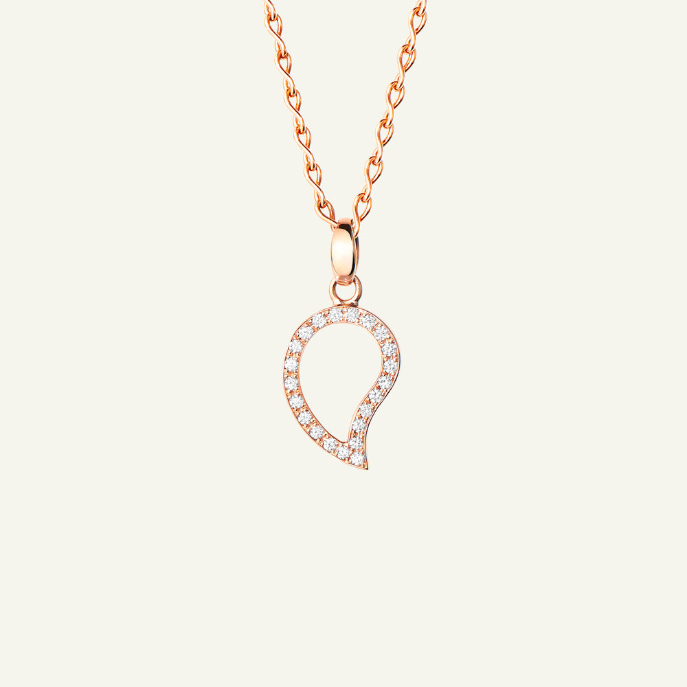 The SIGNATURE small pendant in 18K gold showcases the collection’s iconic petite water drop silhouette, accented with Diamond Pavé for an elegant sparkle. Perfect on any chain or paired with a leather cord, it offers an effortless look that moves seamlessly from day to night.