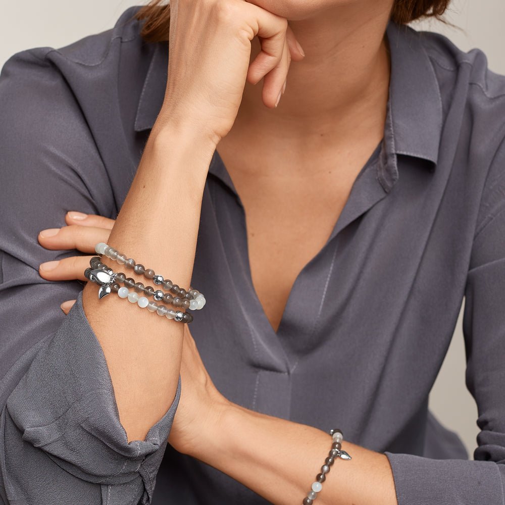 The INDIA Small Drop Bracelet features luminous Moonstone gemstones in natural cool tones from the Color Story ‘Cashmere’, accented with 18K gold polished drop charms. Strung on elastic for a comfortable fit, it’s designed to add a cool, chic touch to your style, season after season.