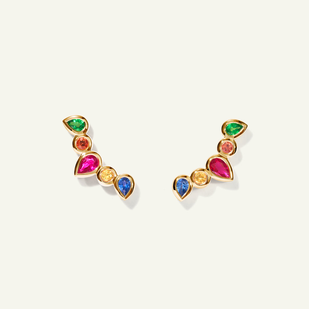 The GYPSY Crawler Earrings in 18K gold are adorned with colorful gemstones from the vibrant ‘Candy’ Color Story, creating a joyful sparkle that follows the natural curve of the ear. Sophisticated yet modern, this elegant design brings the spirit of the GYPSY collection to life in a subtle statement.