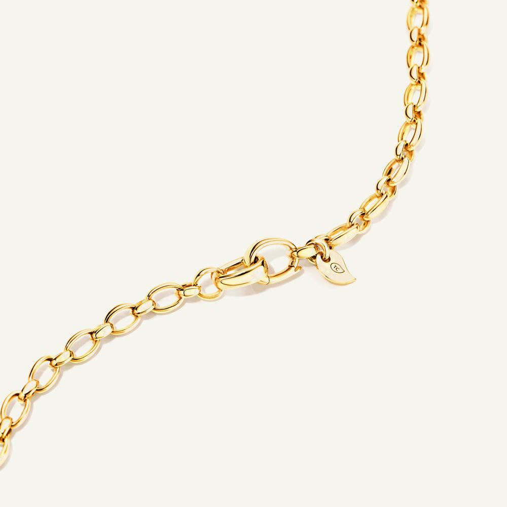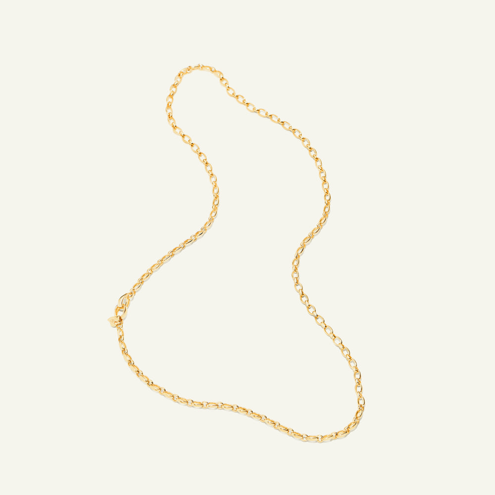The versatile LARIAT necklace is a 100% handmade, high-quality chain with beautiful solid links. Both ends feature a clasp, enabling infinite styling options. Wear it as a versatile lariat or add one of our pendants!