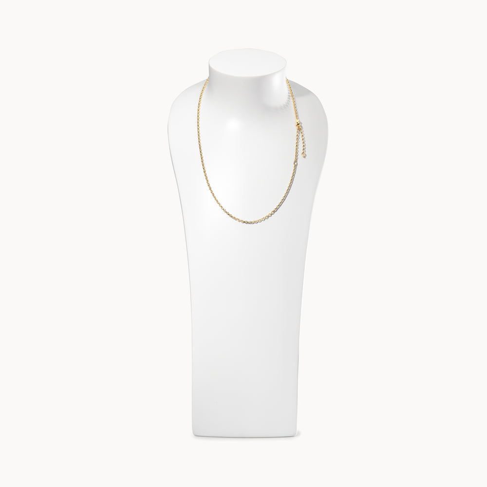 The 60 cm BELCHER chain can be adjusted to two different lengths and features two drop-shaped elements. This 2.8 mm chain is the perfect complement to our MIKADO, SIGNATURE or INDIA pendants and is perfect for layering with longer chains.