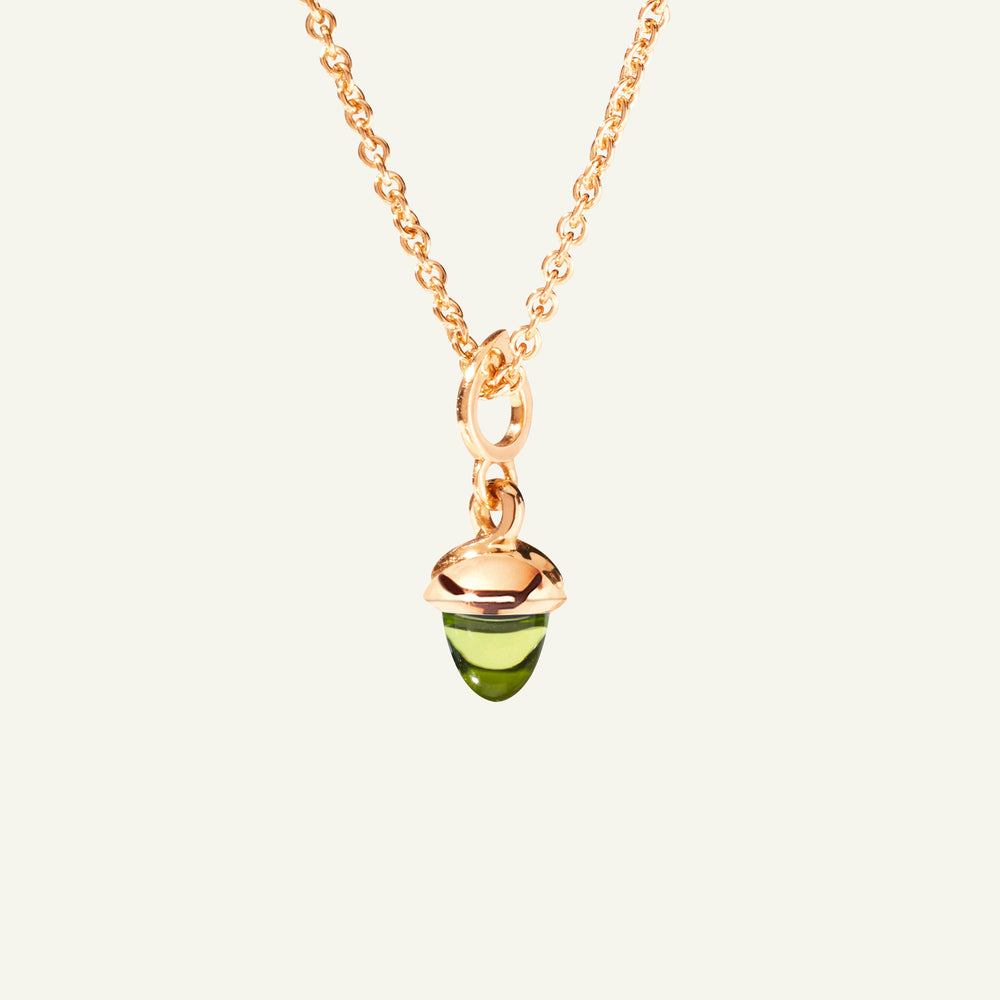 The miniMIKADO Pendant with Peridot features a petite, vivid green gemstone in the signature acorn shape, set in 18K gold. Designed for effortless styling, miniMIKADO pendants can be worn on a delicate chain or paired with other MIKADO pendants for a personalized look. Ideal for mix & match styling, collecting, and gifting.