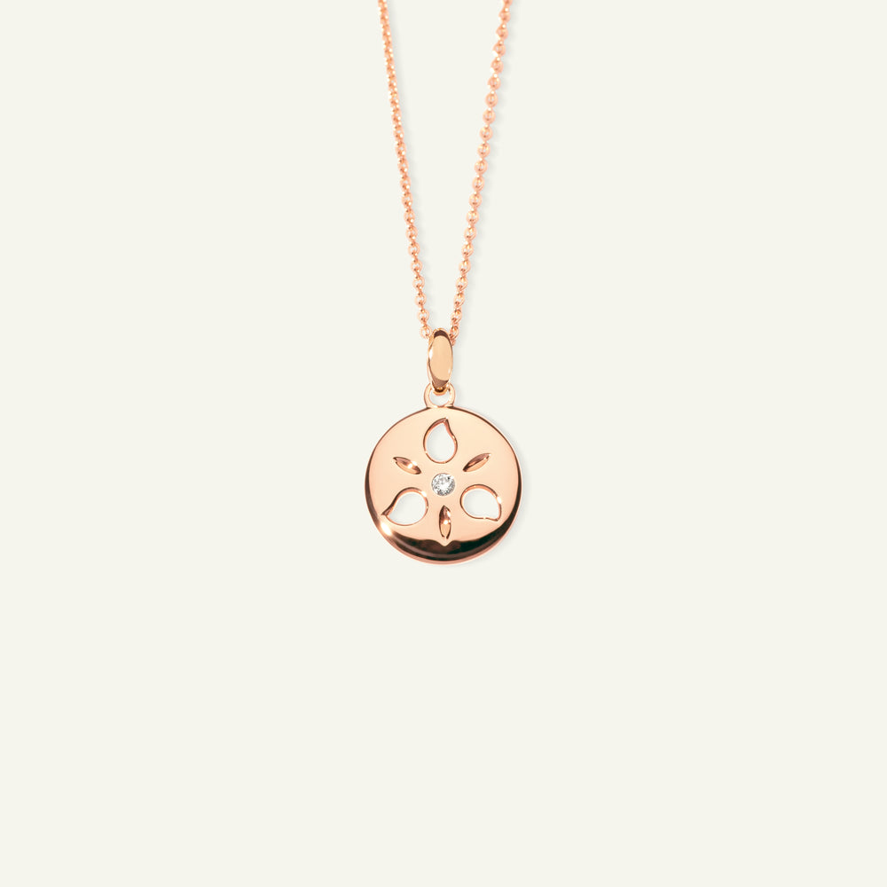 The SAND DOLLAR Small Pendant is inspired by the beauty of the sea urchin shell, symbolizing a deep connection to the ocean. Handcrafted in 18K gold and accented with sparkling white Diamonds, it captures the spirit of the sea with timeless elegance.