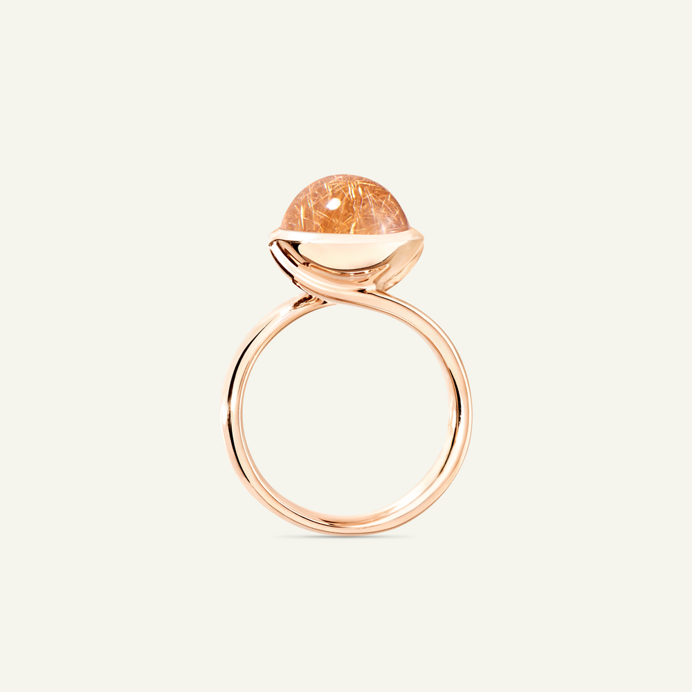 The BOUTON Large Ring in 18K gold features a golden and red Rutilated Quartz, admired for its unique, shimmering inclusions and natural character. Designed with exceptional craftsmanship, it can be worn on its own for a distinctive touch of color or stacked with other BOUTON rings in various sizes for a one-of-a-kind look.