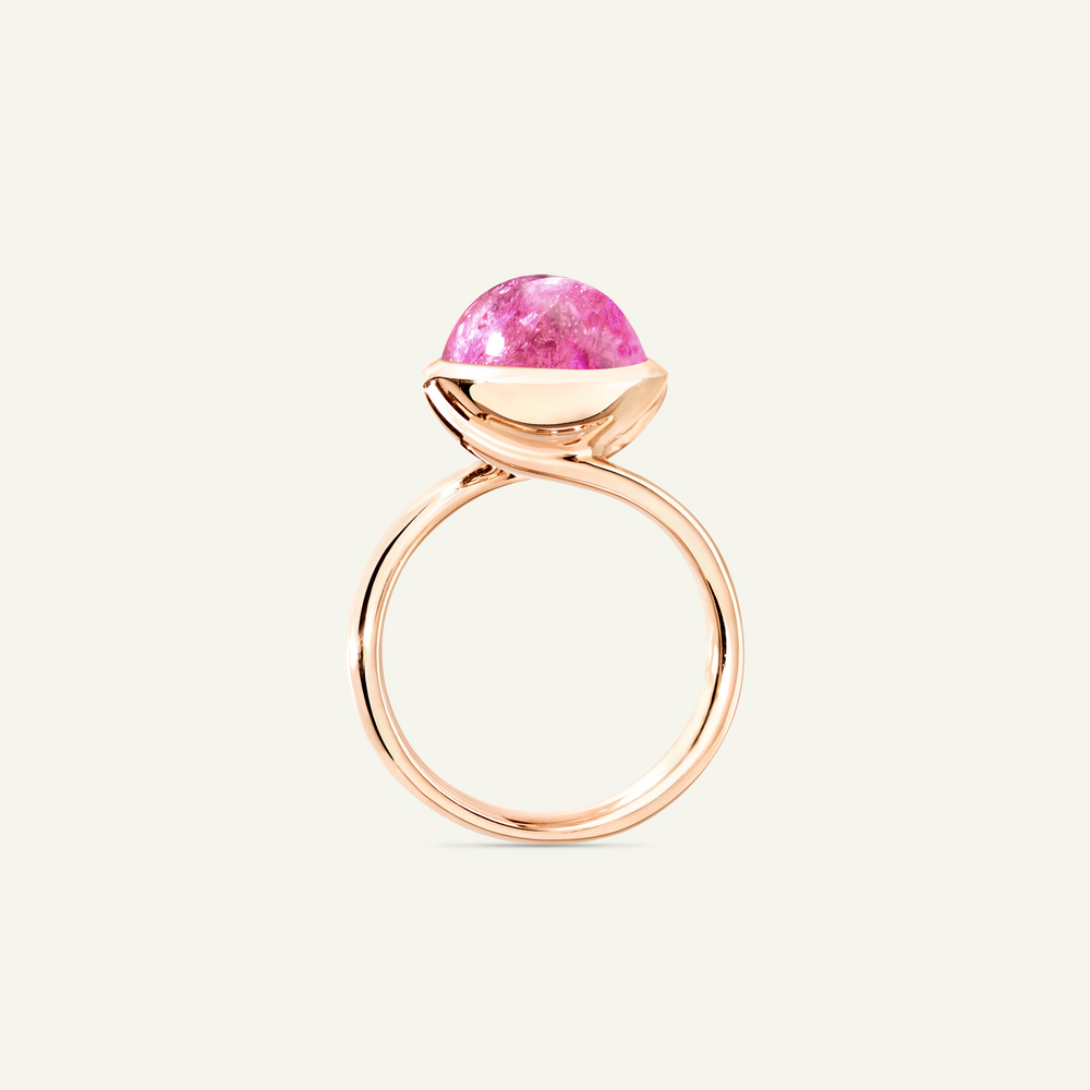 The BOUTON Large Ring in 18K gold showcases a lovely pink gemstone, prized for its vibrant hue and luminous glow. Designed with exceptional craftsmanship, it can be worn on its own to let the beauty of the stone shine or stacked with other BOUTON rings in various sizes for a one-of-a-kind look.