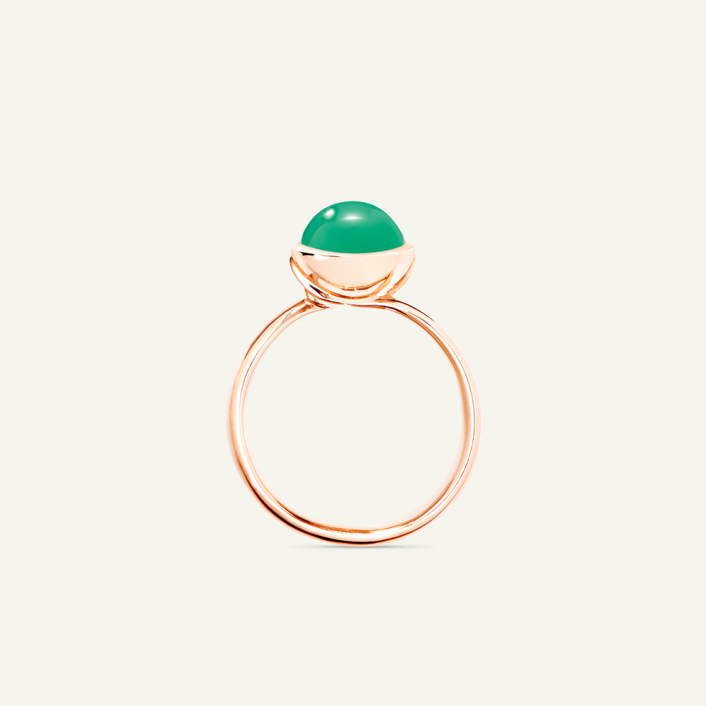 The BOUTON Small Ring in 18K gold showcases a vivid green gemstone, celebrated for its rare and striking hue. Designed with exceptional craftsmanship, it can be worn on its own for a fresh pop of color or stacked with other BOUTON rings in various sizes for a one-of-a-kind look.