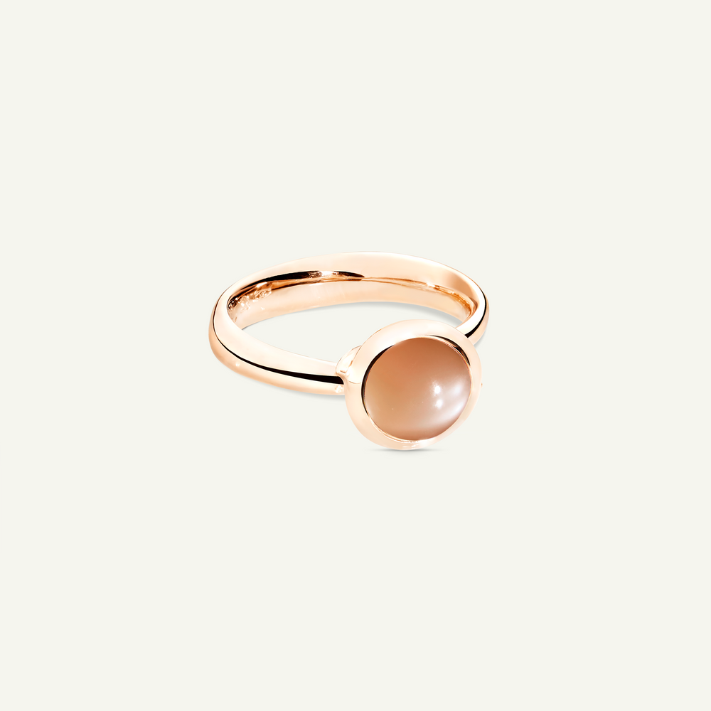 The BOUTON Small Ring in 18K gold features a glowing brown Moonstone, admired for its soft, iridescent shimmer. Designed with exceptional craftsmanship, it can be worn on its own for a delicate pop of color or stacked with other BOUTON rings in various sizes for a one-of-a-kind look.