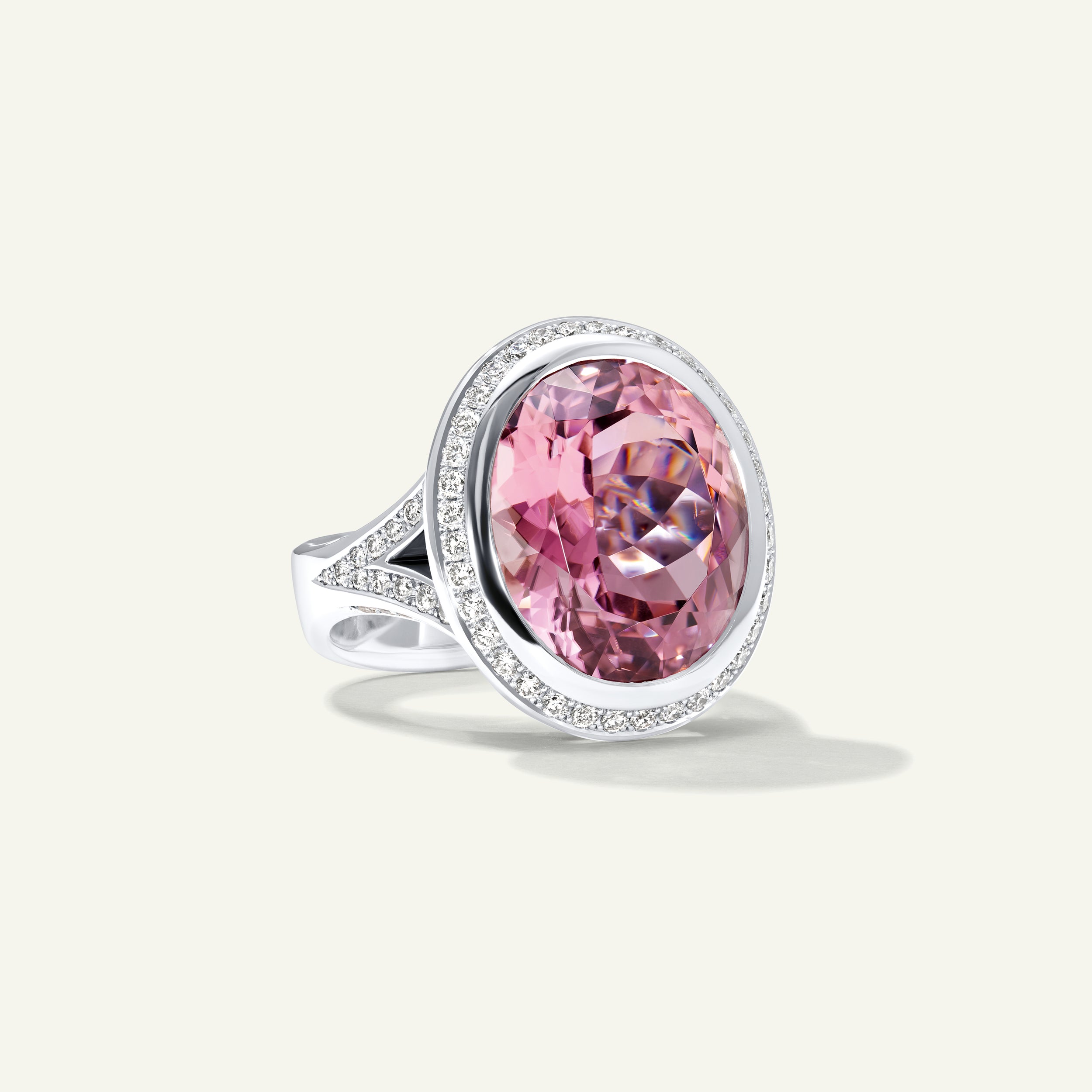 Featuring a 14.75 ct oval-shaped rose Tourmaline and approximately 1.05 ct of brilliant-cut diamonds (F/vs).