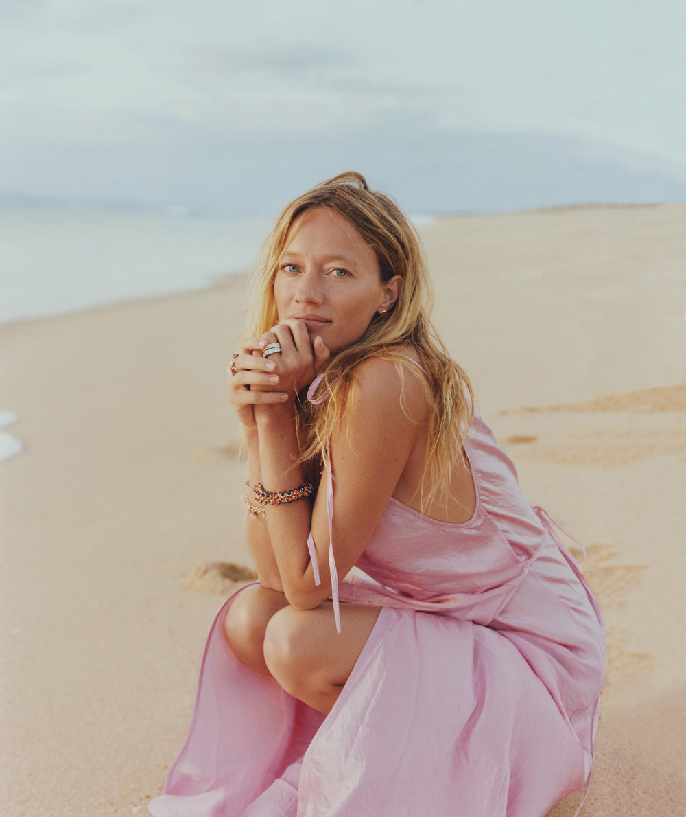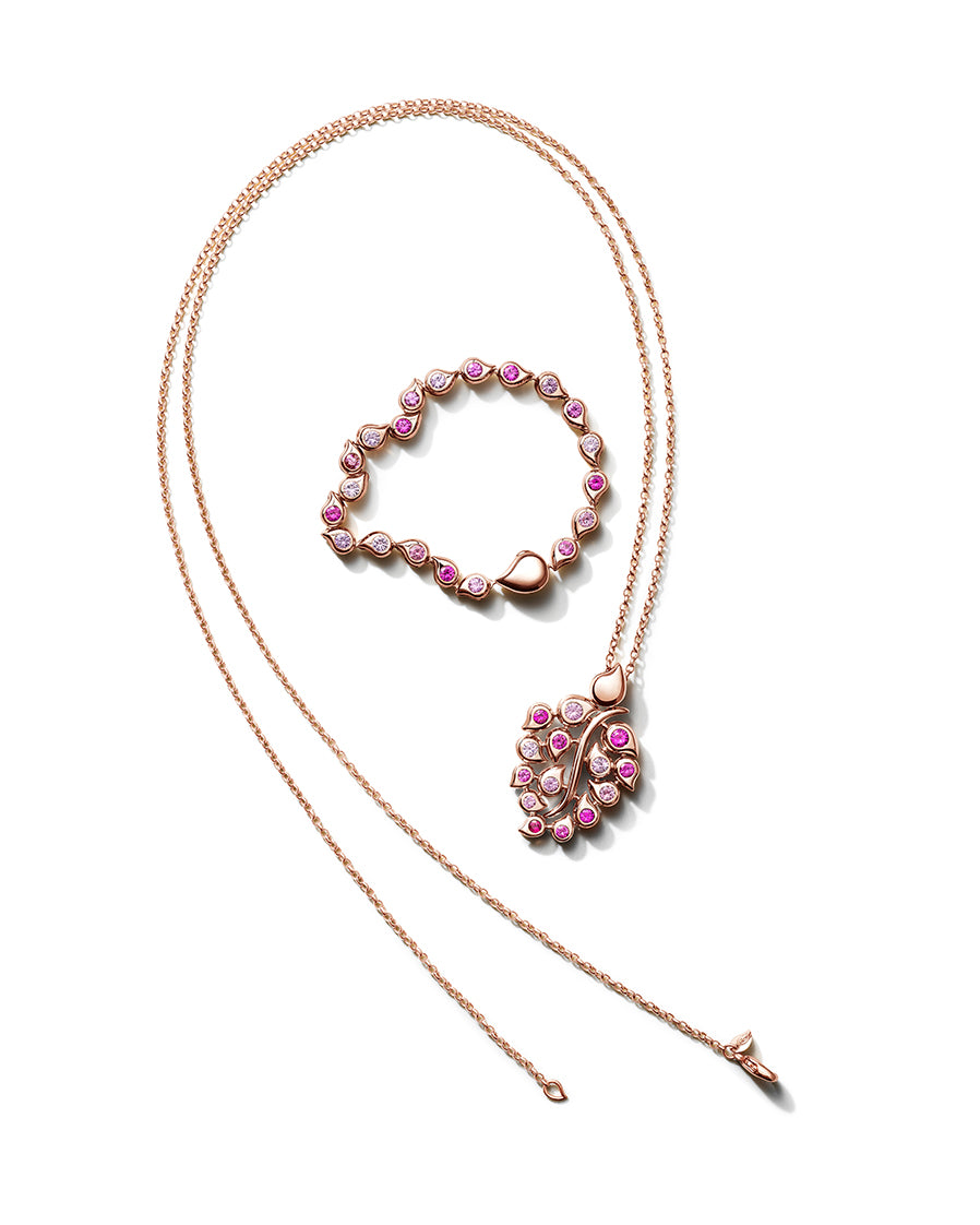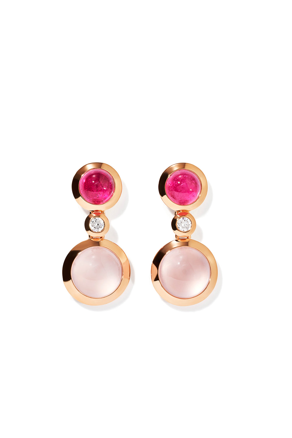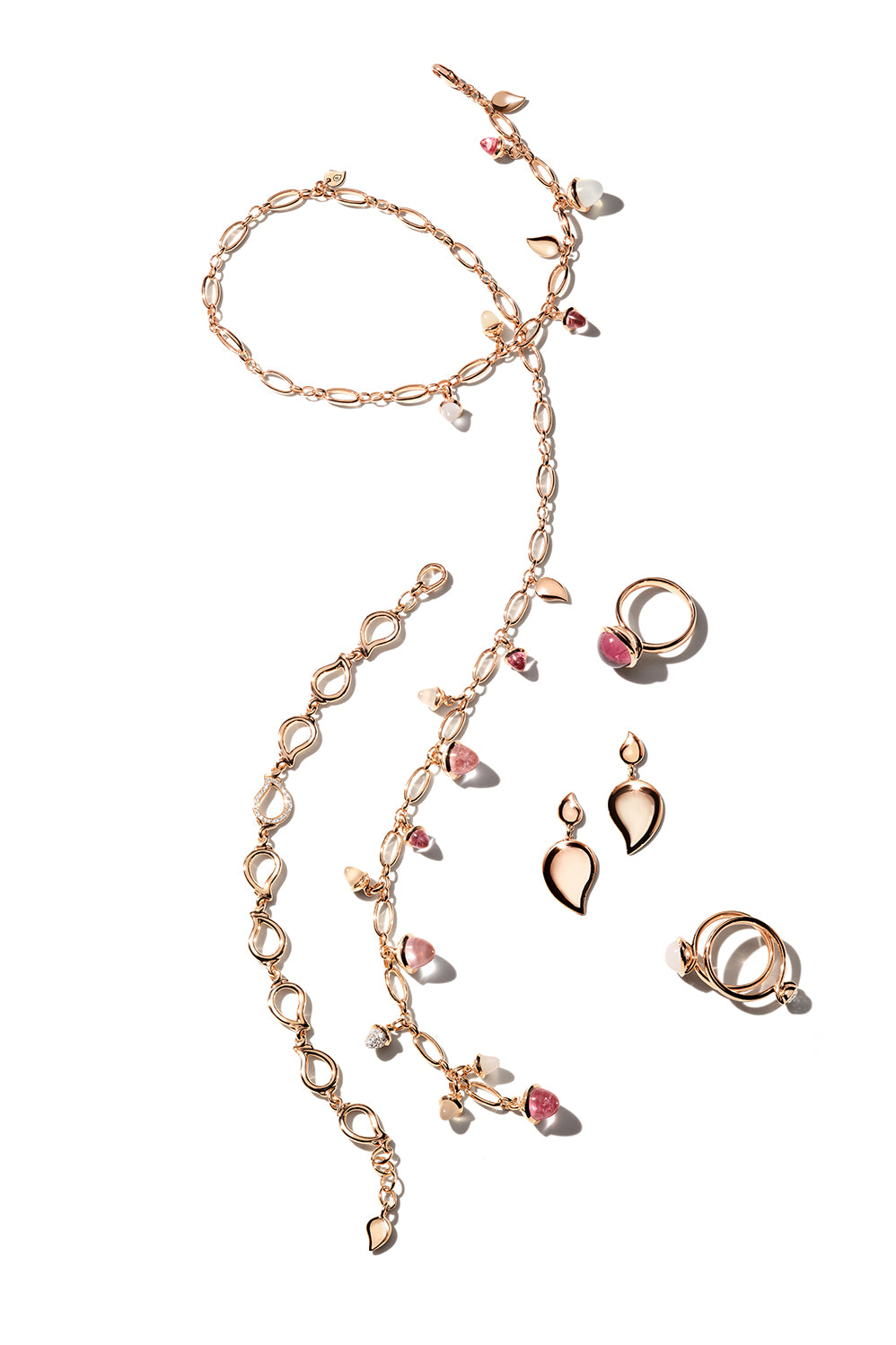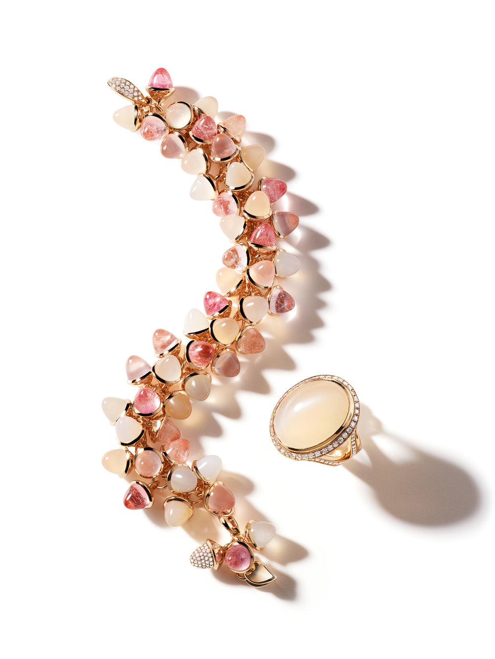 Feminin und sanft spielt 'Blush' mit einer Komposition aus edlem Morganit, Rosenquarz, Mondstein und Turmalin – in atemberaubenden Nuancen von Rosa, Sand, Orange und Pfirsich, gefasst in 18K Roségold.
