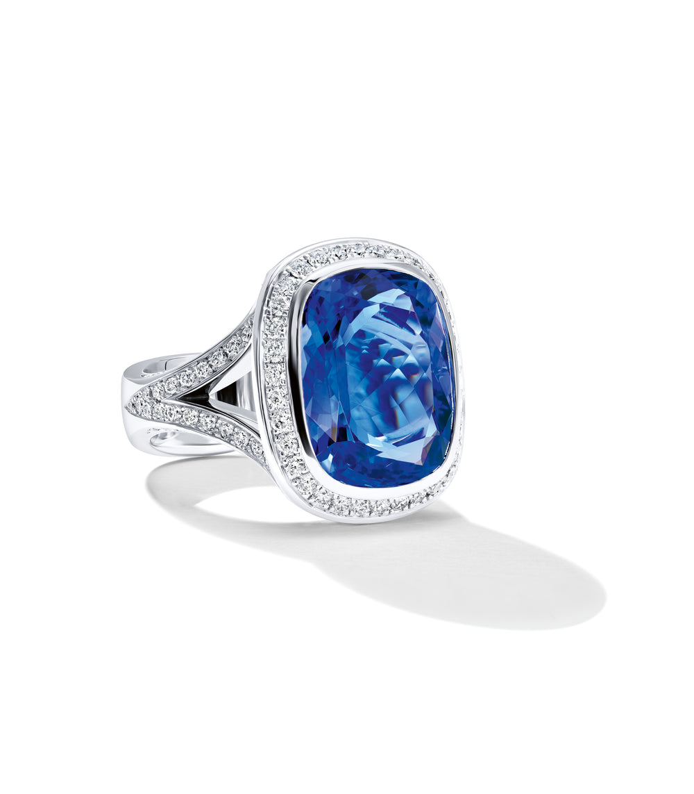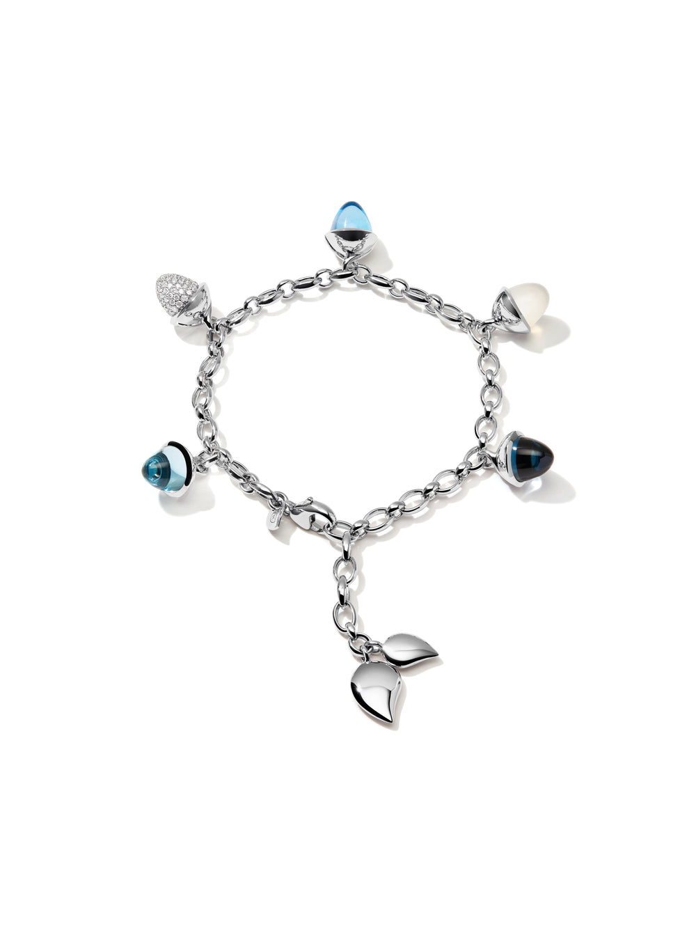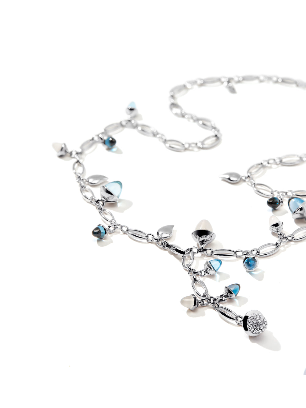 Im Spiel mit kühlen Tönen verzaubert 'Ocean' durch die Kombination von schimmernden Mondsteinen mit einzigartiger Tiefe, funkelnden Diamanten, tiefblauem Topas und 18K Weißgold.