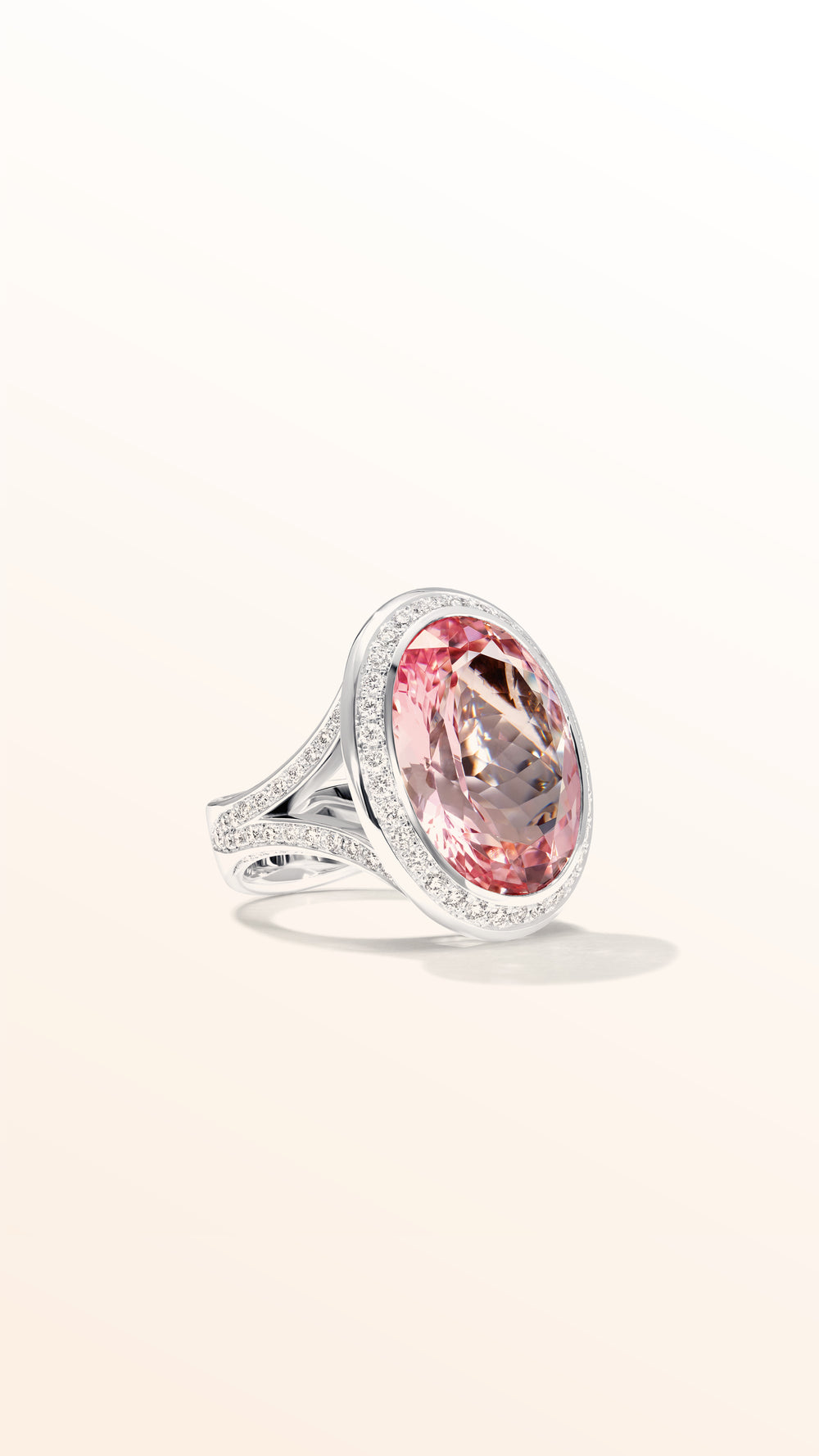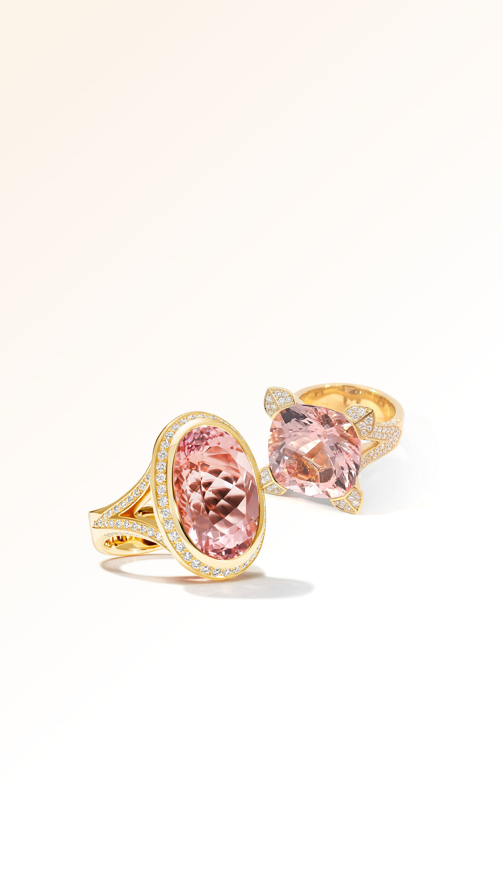 Die Farbpalette reicht von zartem Rosé bis hin zu sanften Pfirsichtönen – Morganit erlebte in den 2010er-Jahren ein bemerkenswertes Comeback an Popularität. Bereits 1910 schlug der Chef-Gemmologe von Tiffany & Co. den Namen zu Ehren seines Freundes J. P. Morgan vor – einem bedeutenden Edelsteinsammler und Förderer von Kunst und Wissenschaft.