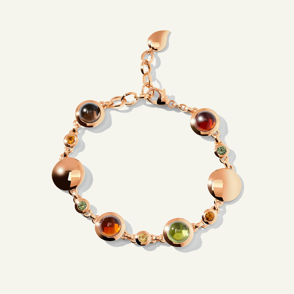 Das BOUTON Armband in 'Indian Summer' ist ist mit leuchtenden, im Cabochon geschliffenen Edelsteinen in warmen Grün-, Rot- und Orangetönen besetzt und wird von funkelnden Saphiren akzentuiert. Durch sein flexibles Design passt es sich jedem Handgelenk perfekt an und bietet vielseitige Styling-Möglichkeiten. Ein zeitloses Schmuckstück, das Sie viele Jahre lang begleiten wird.