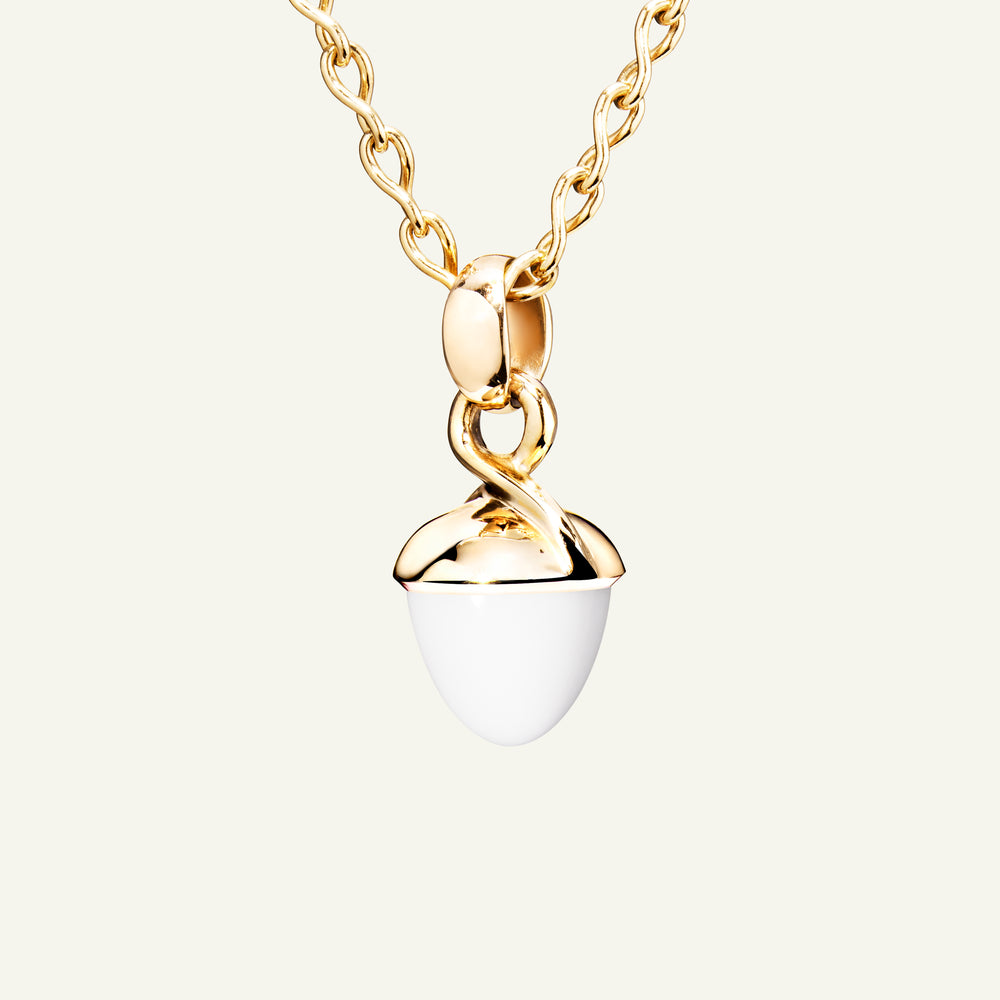 Der ikonische MIKADO BOUQUET Anhänger zeigt einen wunderschönen kostbaren Cacholong in unserer geliebten Kegelform. Dieser mittelgroße Anhänger ist in 18K Gold gefasst und in vielen weiteren schönen Edelsteinkombinationen erhältlich, was zum Sammeln verlockt. Tragen Sie ihn an einer unserer Qualitätsketten oder Lederbändern.
