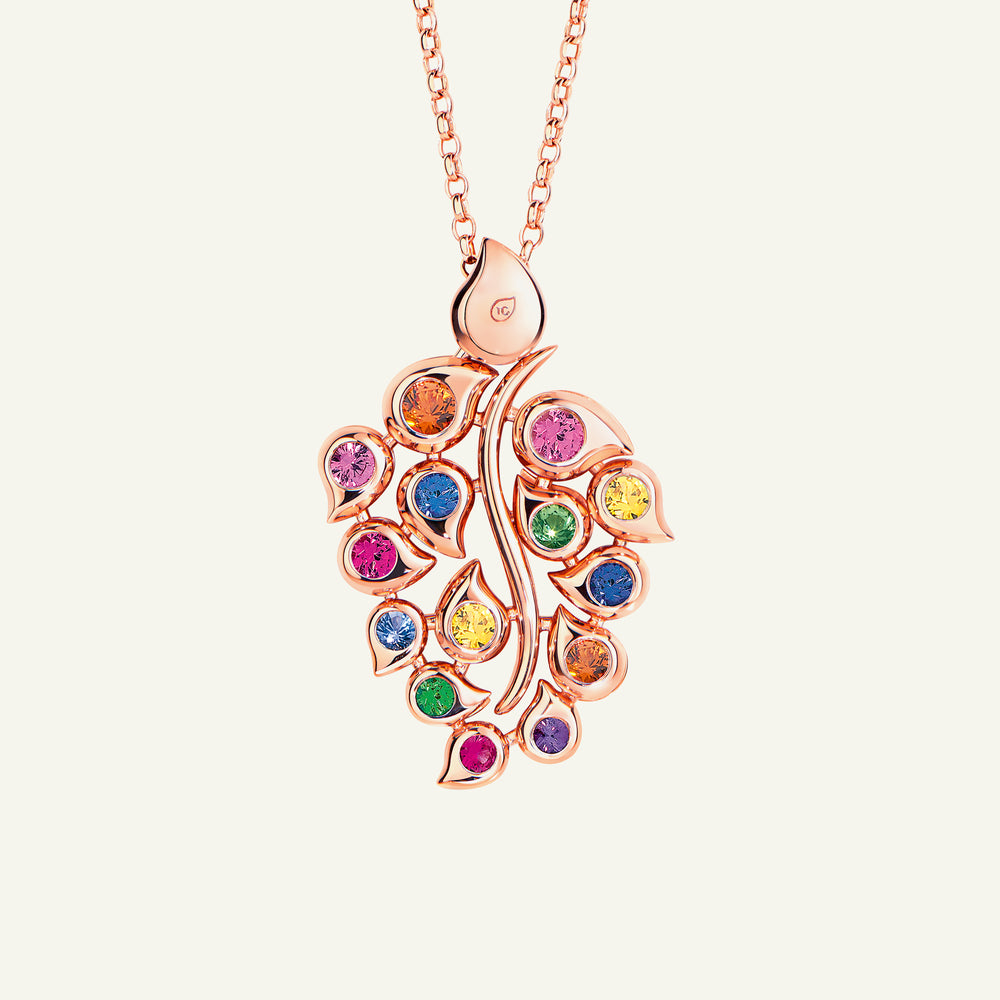 Der SNOWFLAKES Leaf Anhänger in 'Candy' funkelt auf der einen Seite mit mehrfarbigen Edelsteinen und auf der anderen mit funkelnden weißen Diamanten, jeweils gefasst in 18 Karat Gold. Getragen an einer langen Kette oder einem lässigen Lederband, ist dieser Anhänger vielseitig einsetzbar – eine elegante Wahl für alltäglichen Luxus ebenso wie für besondere Anlässe.