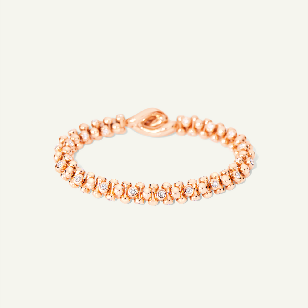 Das ALWAYS DIAMONDS Alternating Armband in 'Classic' ist mit strahlenden Diamanten in einem raffinierten, abwechselnden Muster besetzt, gefasst in 18 Karat Gold. Es legt sich anmutig um das Handgelenk und wird von der ikonischen Drop-Schließe vollendet. Ein Schmuckstück fürs Leben.