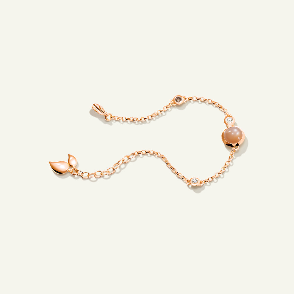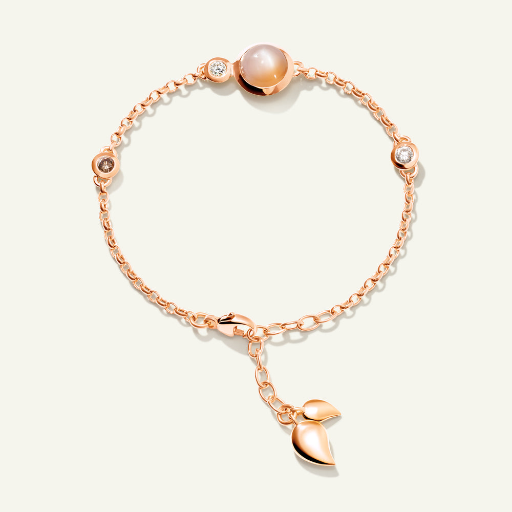 Das BOUTON Mini Chain Armband in 'Camel' zelebriert erdige Brauntöne mit einer verspielten Kombination aus Edelsteinen im Cabochon-Schliff und zarten Wassertropfen-Details in 18 Karat Gold. Ausdrucksstark und zugleich raffiniert passt es an jedes Handgelenk und entfaltet solo getragen ebenso seine Wirkung wie im Layering für ein noch markanteres Statement. Ein vielseitiges Schmuckstück, das jeder Kollektion lebendige Farbe und mühelosen Charme verleiht.