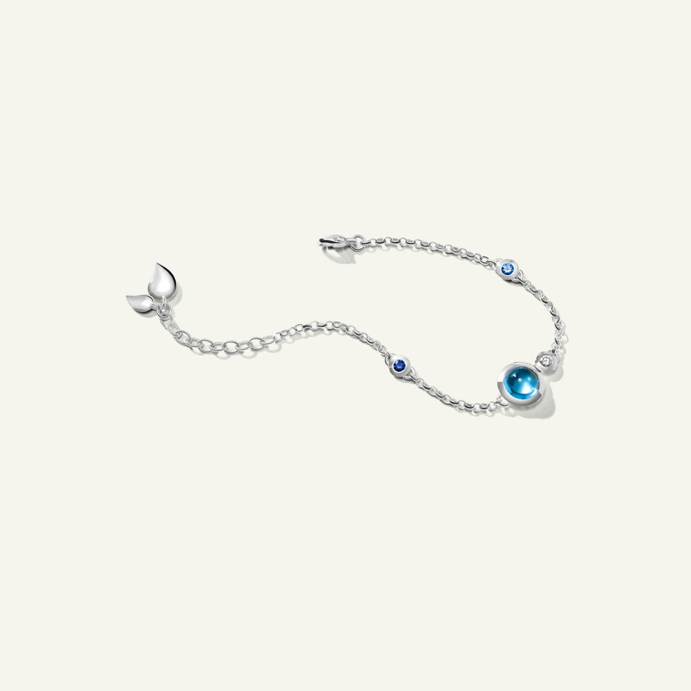 Das BOUTON Mini Chain Armband in 'Ocean' zelebriert die Tiefen des Meeres mit leuchtenden Blautönen mit einer verspielten Kombination aus Edelsteinen im Cabochon-Schliff und zarten Wassertropfen-Details in 18 Karat Gold. Ausdrucksstark und zugleich raffiniert passt es an jedes Handgelenk und entfaltet solo getragen ebenso seine Wirkung wie im Layering für ein noch markanteres Statement. Ein vielseitiges Schmuckstück, das jeder Kollektion lebendige Farbe und mühelosen Charme verleiht.