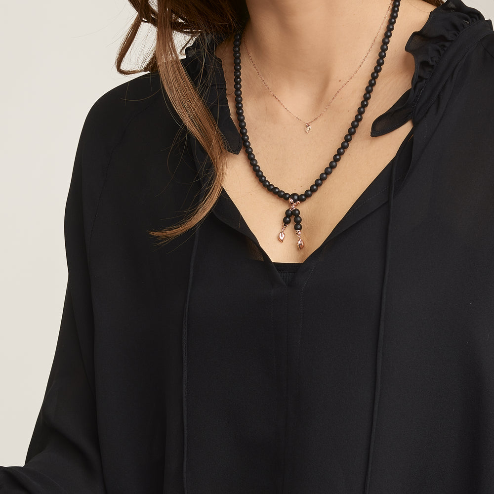 Das INDIA Medium Armband besteht aus edlen Ebenholz-Perlen, akzentuiert durch 18 Karat Goldperlen und die ikonischen Wassertropfen-Charms. Auf elastischem Band aufgezogen, überzeugt dieses dreifach gewickelte Design mit höchstem Tragekomfort und kann auch als Halskette getragen werden – für vielseitigen Stil und ein ausdrucksstarkes Statement.