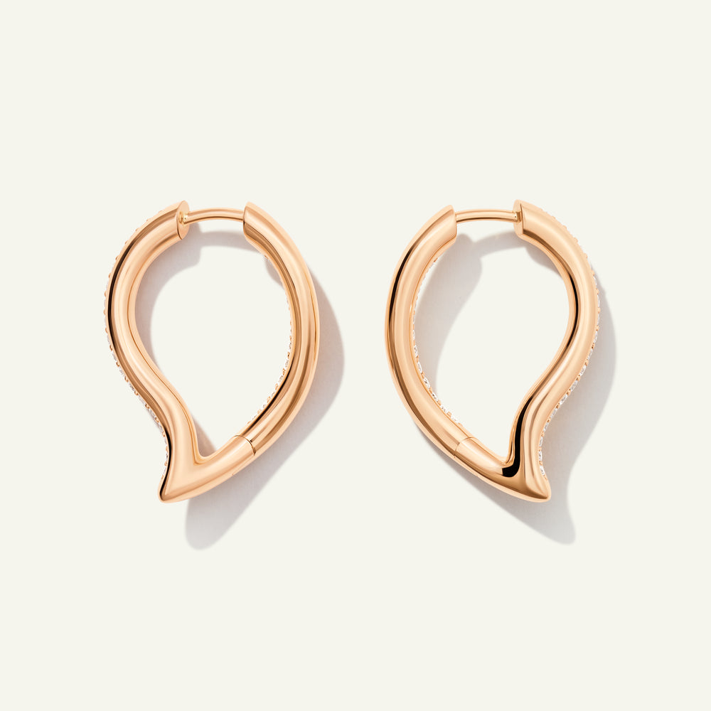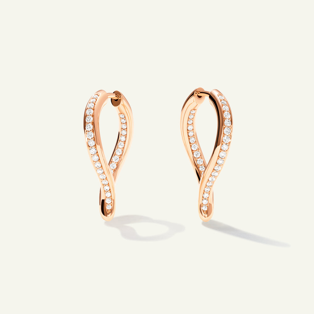 In aufwendiger Handarbeit aus 18 Karat Gold gefertigt, präsentieren die SIGNATURE Twisted Drop Hoop Ohrringe eine moderne Neuinterpretation der ikonischen Wassertropfen-Silhouette. Diamant Pavé funkelt innen wie außen und sorgt für ein strahlendes Gesamtbild, während das gedrehte Profil sich sanft ans Ohrläppchen schmiegt und sicheren Tragekomfort bietet. Das perfekte Schmuckstück für eine neue Generation von Connaisseurs.
