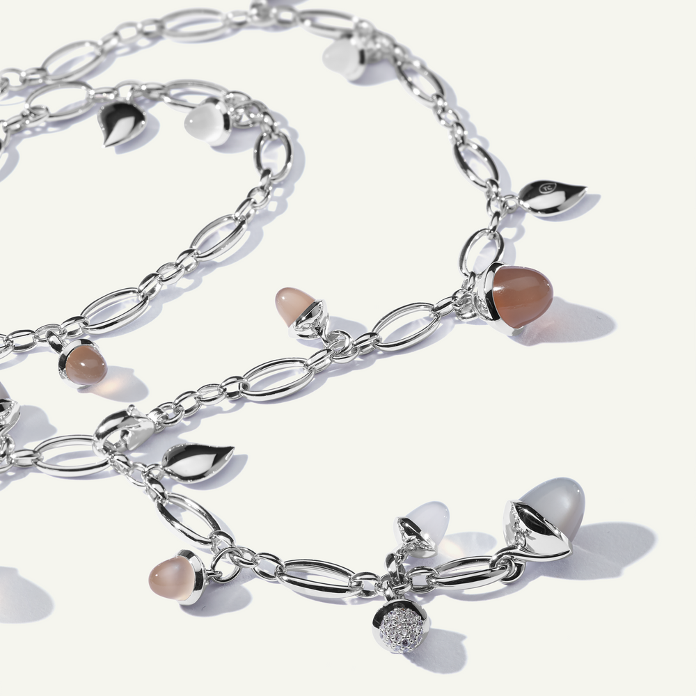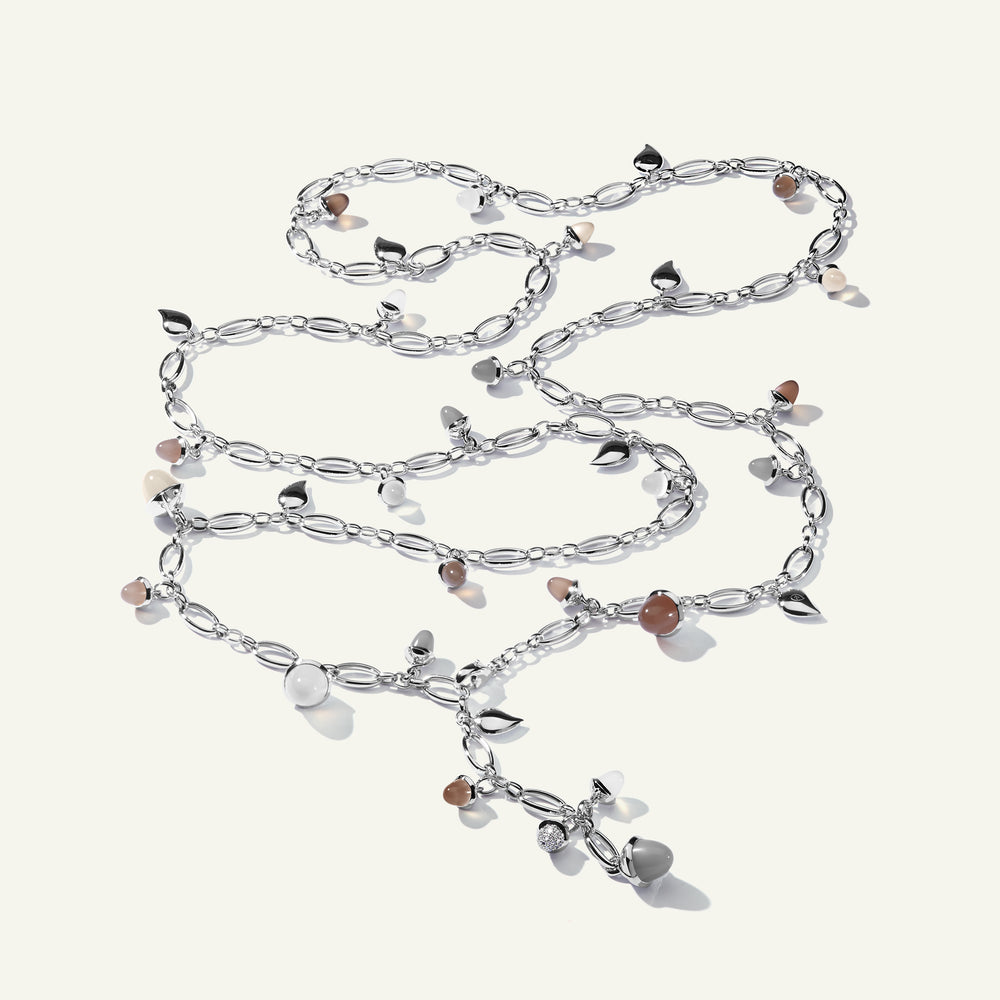 Setzen Sie ein Statement mit der MIKADO Halskette in 'Cashmere', die vielseitige Styling-Möglichkeiten für jeden Anlass bietet. Ein funkelnder Wasserfall aus leuchtenden Mondsteinen in sanften Neutraltönen erstrahlt an einer handgefertigten Kette aus 18 Karat Gold. Akzente aus Diamant Pavé und zarten Wassertropfen verleihen zusätzlichen Glanz. Lässig am Tag, elegant am Abend.