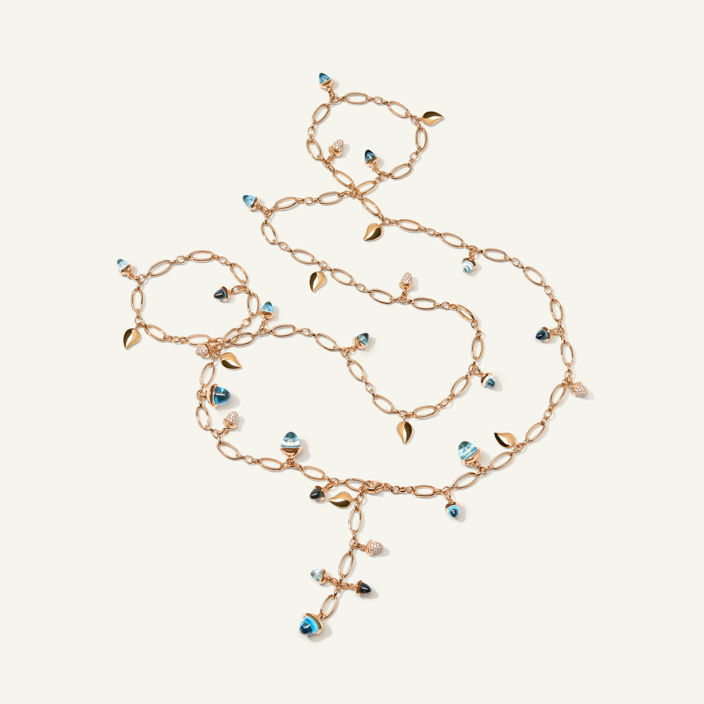 Setzen Sie ein Statement mit der MIKADO Halskette in 'Sky', die vielseitige Styling-Möglichkeiten für jeden Anlass bietet. Ein funkelnder Wasserfall aus leuchtenden Blau- und Weißtönen erstrahlt an einer handgefertigten Kette aus 18 Karat Gold. Akzente aus Diamant Pavé und zarten Wassertropfen verleihen zusätzlichen Glanz. Lässig am Tag, elegant am Abend.