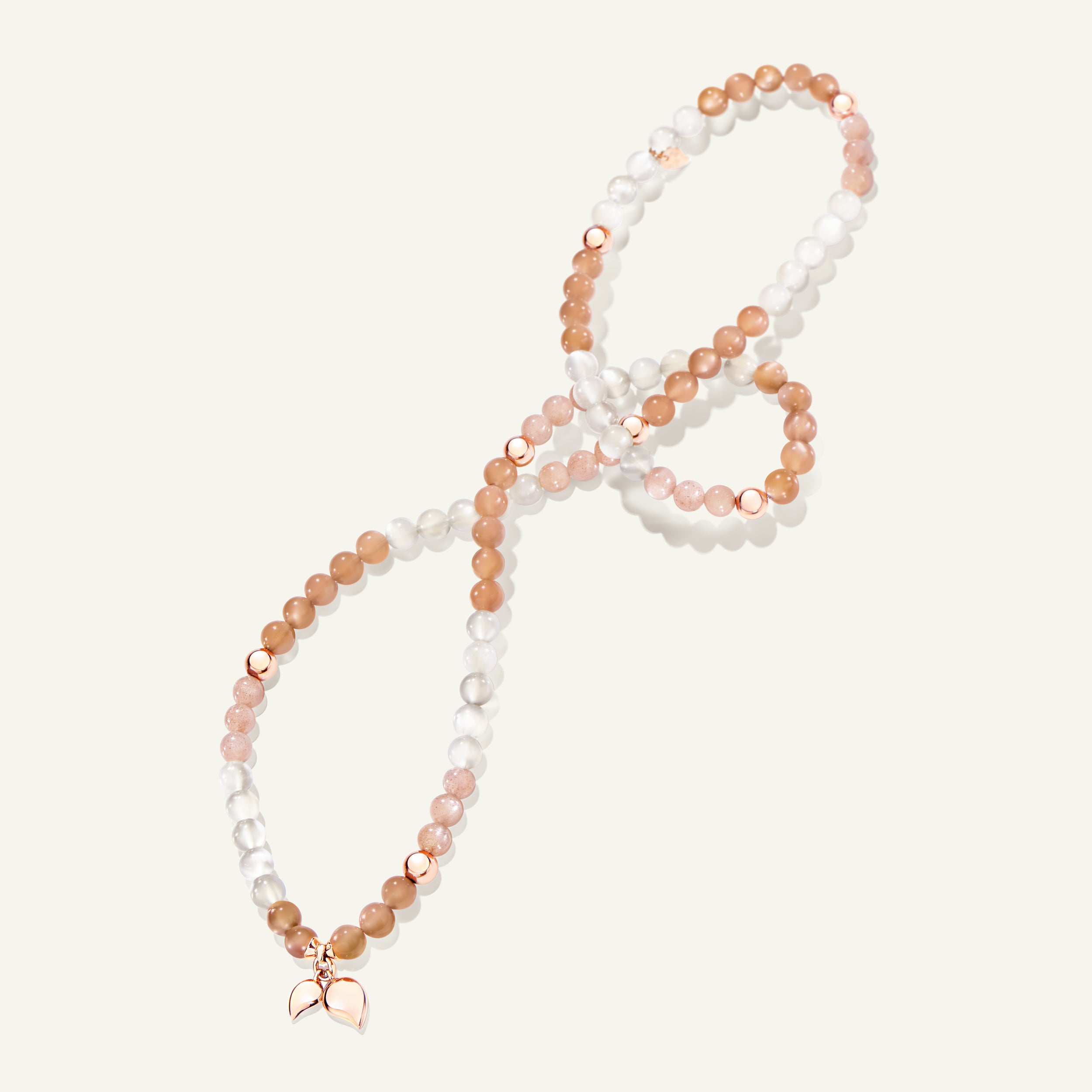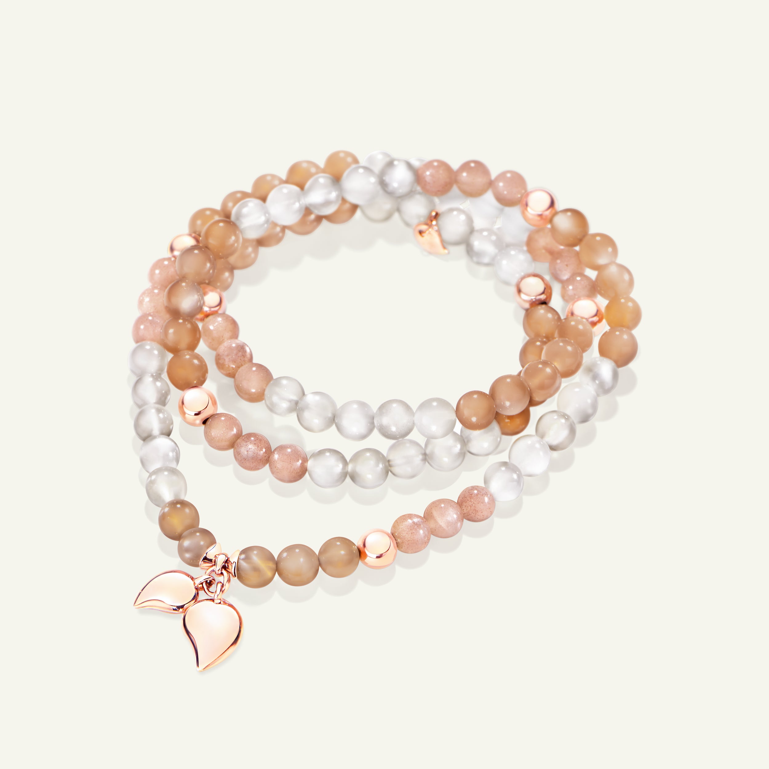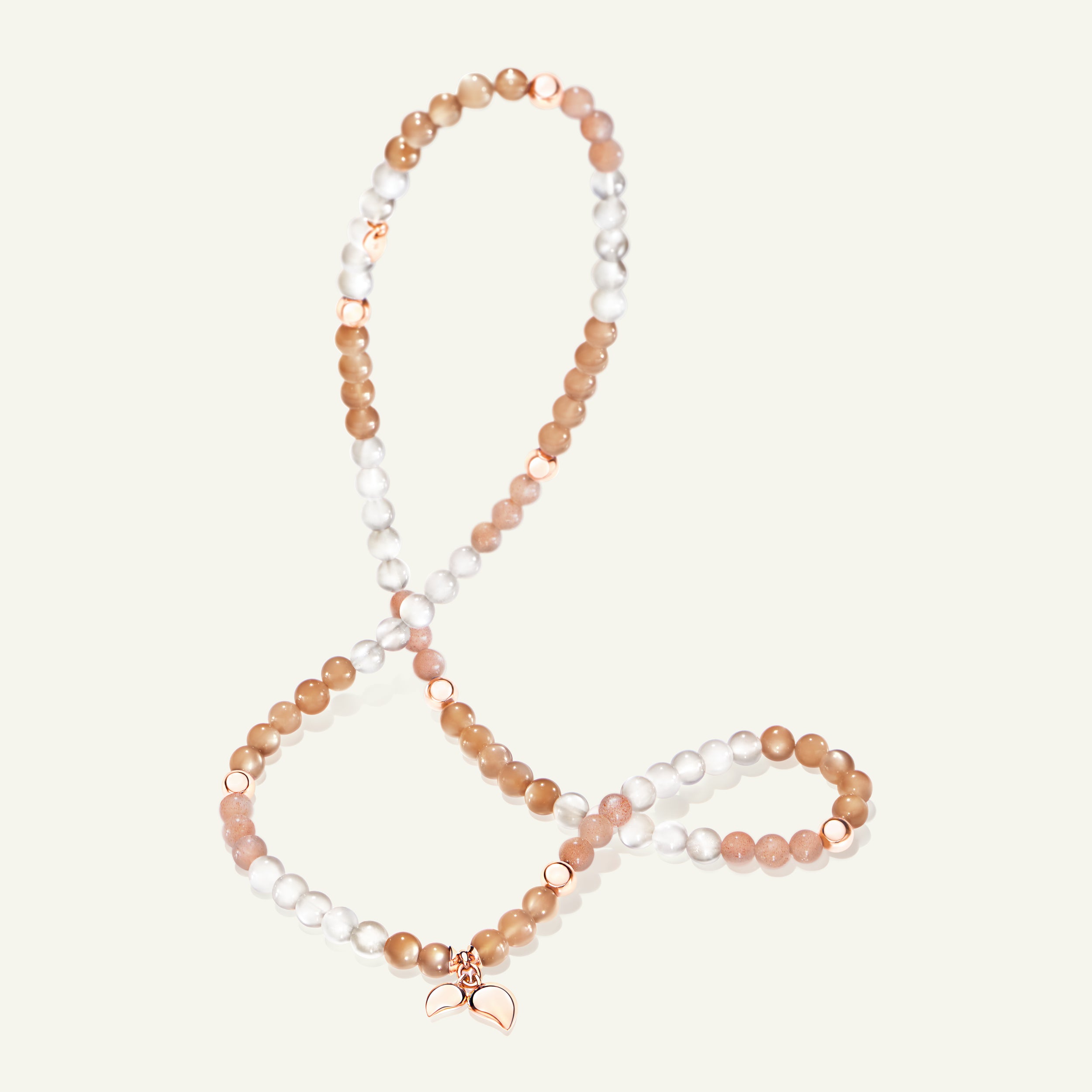 Das INDIA Medium Armband in der Color Story 'Camel' besteht aus Mondsteinen in warmen, erdigen Nuancen, akzentuiert durch Elemente aus 18 Karat Gold und zwei bewegliche Drop Charms. Auf elastischem Band aufgezogen, überzeugt dieses dreifach gewickelte Design mit höchstem Tragekomfort und lässt sich auch als Halskette tragen – für vielseitigen Stil und natürliche Eleganz.