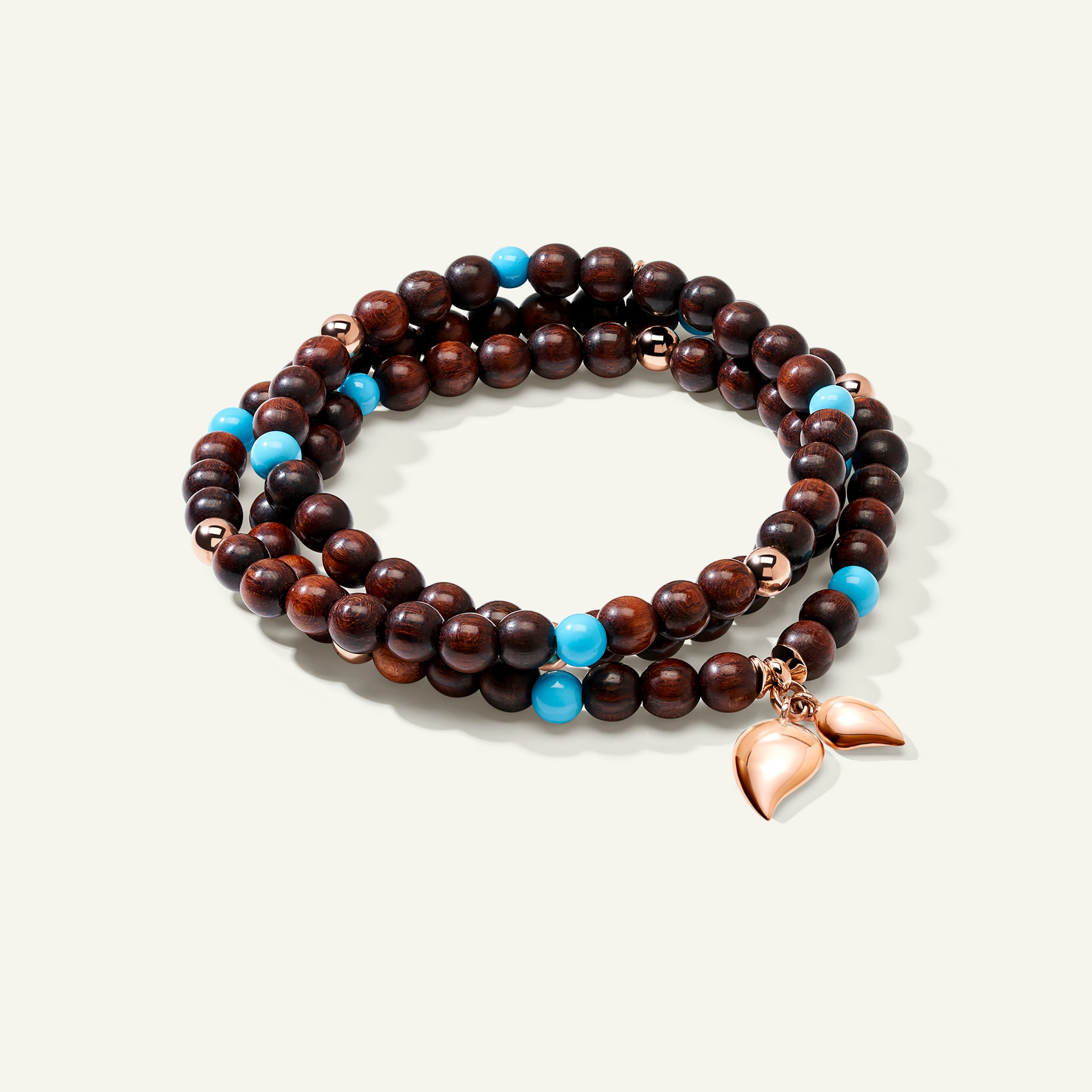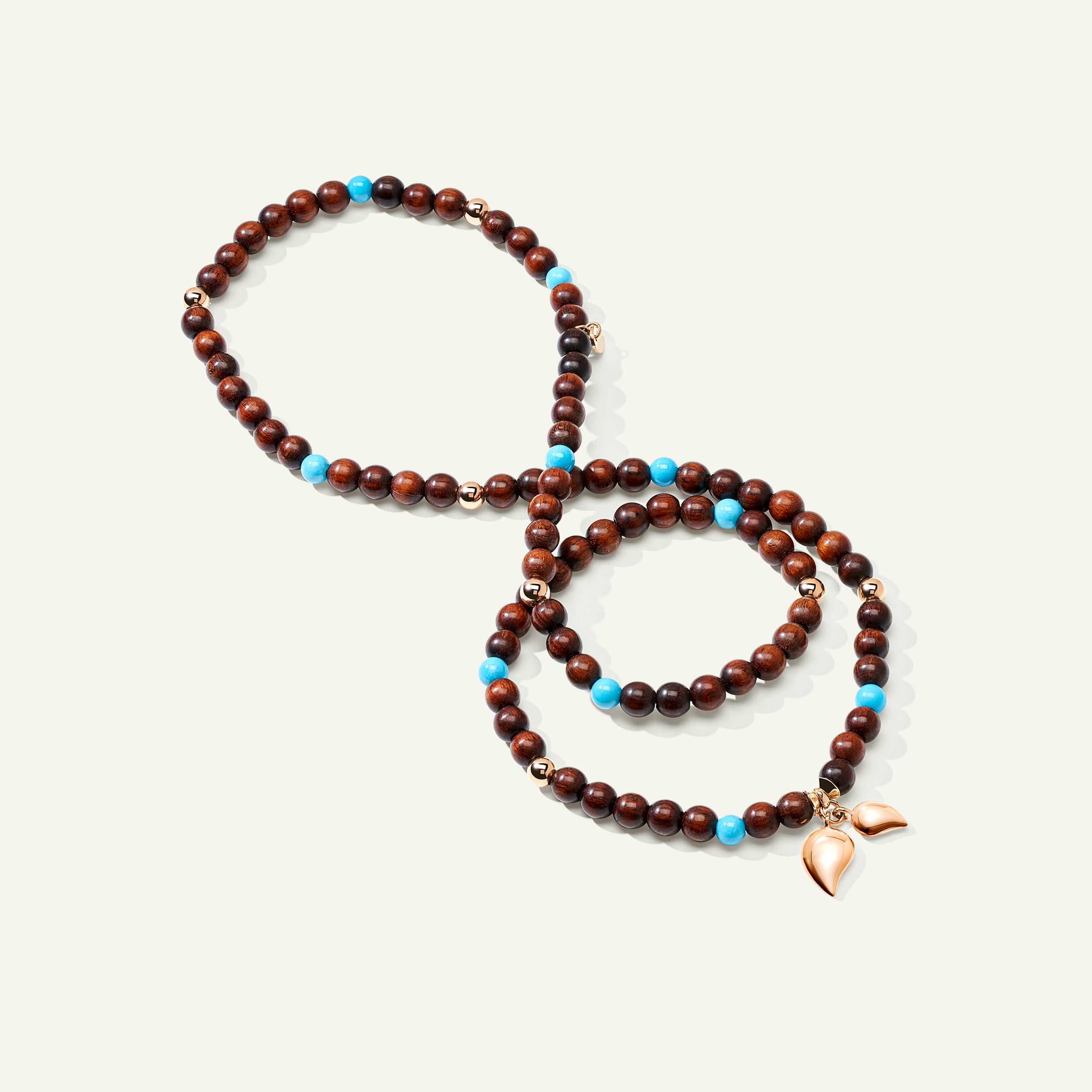 Das INDIA Medium Armband besteht aus ausdrucksstark gemasertem Schlangenholz in Kombination mit leuchtendem Türkis, akzentuiert durch 18 Karat Goldperlen und die ikonischen Wassertropfen-Charms. Auf elastischem Band aufgezogen, lässt sich dieses dreifach gewickelte Design komfortabel tragen und auch als Halskette stylen – für vielseitigen Stil und ein ausdrucksstarkes Statement.