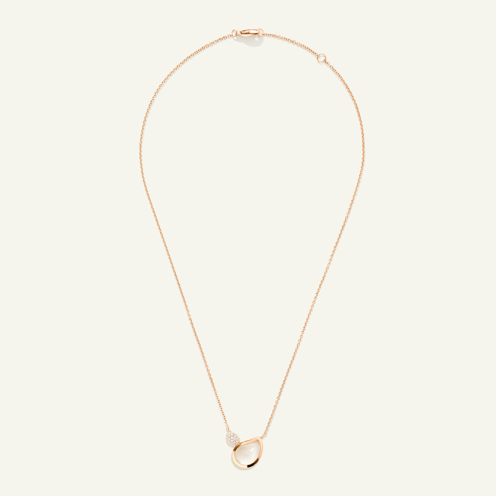 • Necklace SIGNATURE 2 Drops Moonstone sand/white / Diamond Pavé