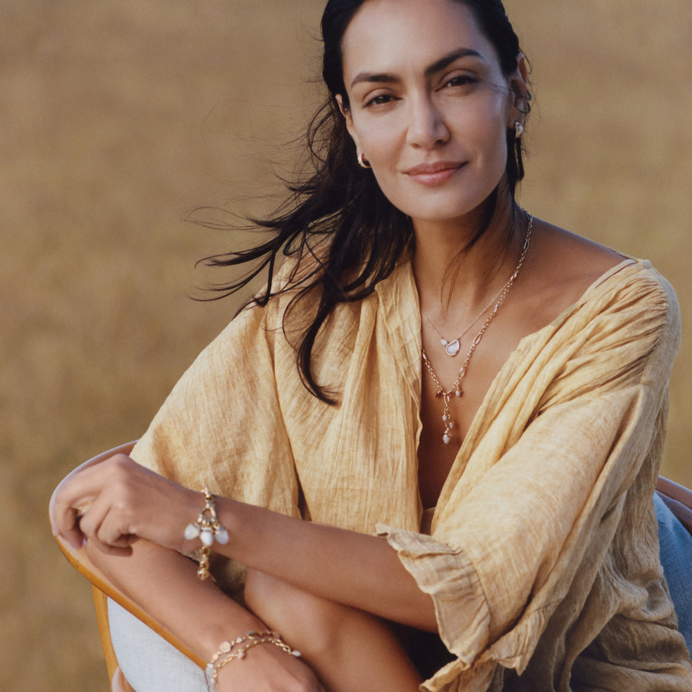 A playful yet subtle addition to the SIGNATURE collection, this dual-drop necklace features a delicate drop in full Diamond Pavé with a larger gemstone drop in eye-catching Swiss Topaz. An adjustable-length chain makes layering this piece across the TAMARA COMOLLI collection as easy as a summer breeze.