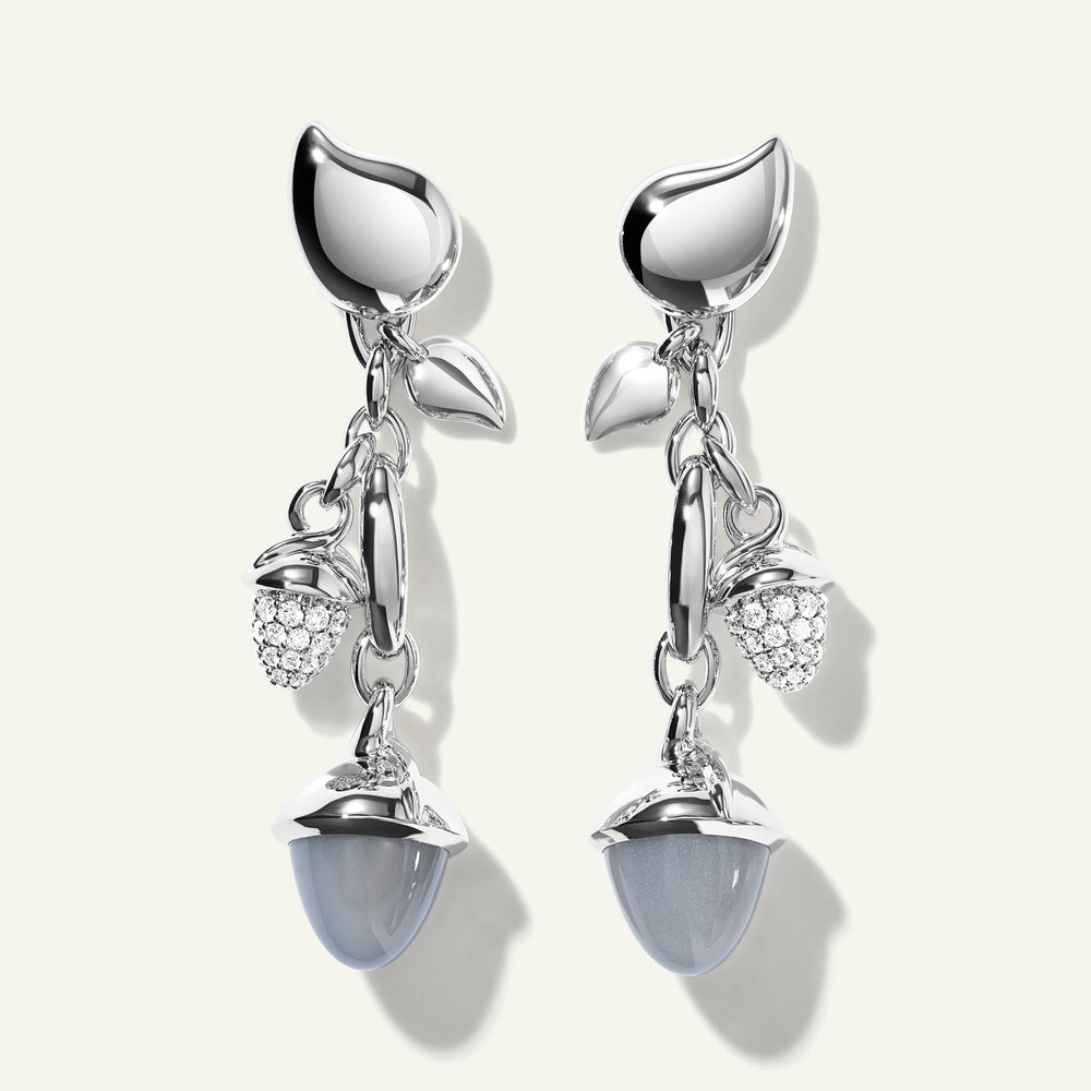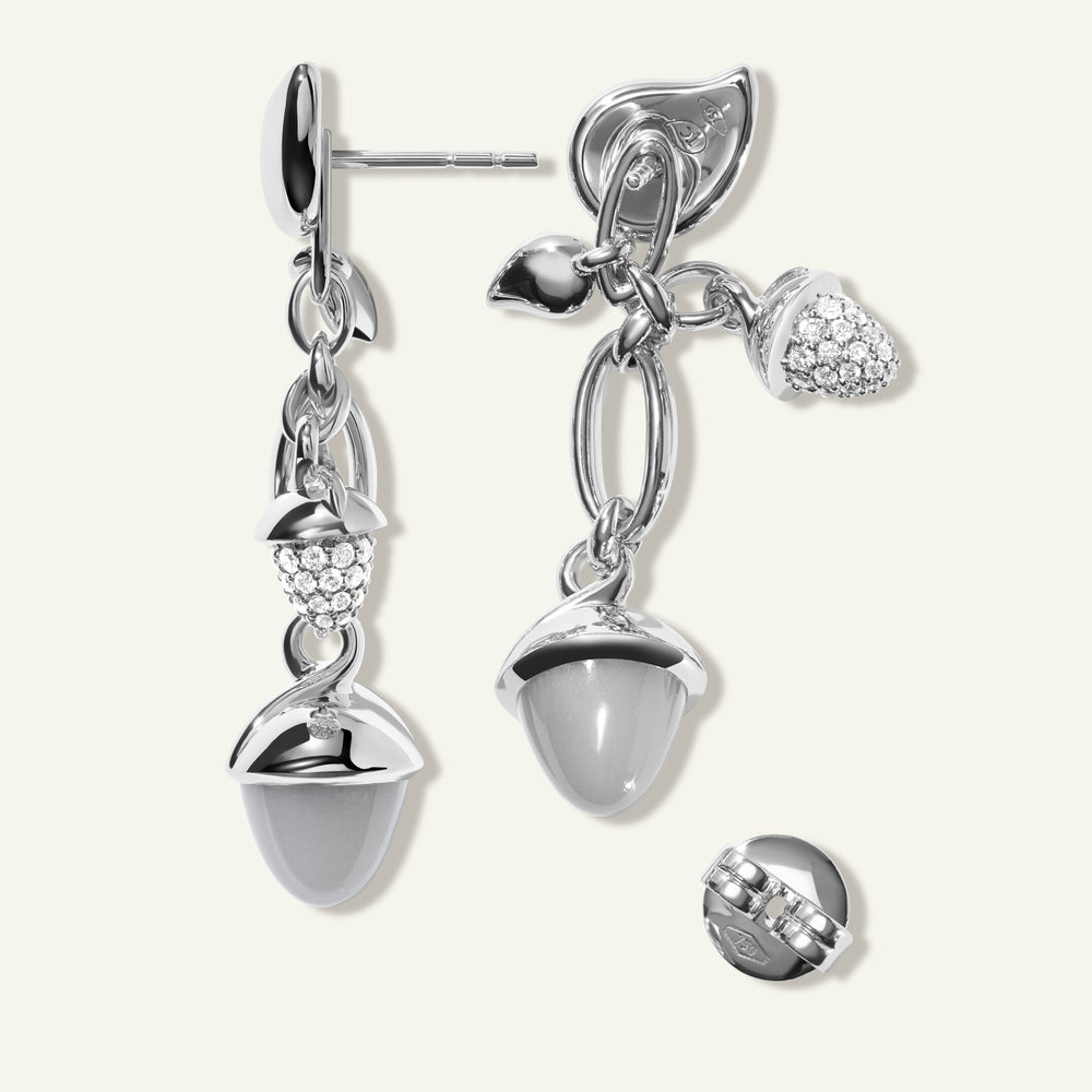 Eine Hommage an die Individualität: Die MIKADO Dangling 2 Acorn Ohrringe lassen sich wahlweise als elegante Hänger, stilvolle Stecker oder als Anhänger an einer Kette tragen. In aufwendiger Handarbeit aus 18 Karat Gold gefertigt, verleihen die charakteristischen Wassertropfen-Details dem Design eine unverwechselbare Signatur. Die elegante Color Story 'Cashmere' kombiniert leuchtende Mondsteine in sanften Neutral­tönen mit Diamant Pavé zu einem Look, der anmutig und gleichzeitig mühelos schick wirkt.