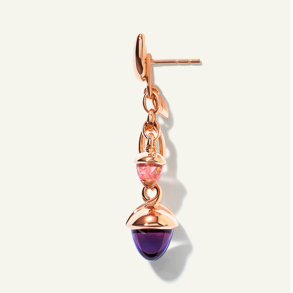 Eine Hommage an die Individualität: Die MIKADO Dangling 2 Acorn Ohrringe lassen sich wahlweise als elegante Hänger, stilvolle Stecker oder als Anhänger an einer Kette tragen. In aufwendiger Handarbeit aus 18 Karat Gold gefertigt, verleihen die charakteristischen Wassertropfen-Details dem Design eine unverwechselbare Signatur. Die strahlende Color Story 'Wildberry' kombiniert satte Brombeer-, Himbeer- und Blaubeertöne zu einem Look, der verspielt, farbenfroh und gleichzeitig mühelos schick wirkt.
