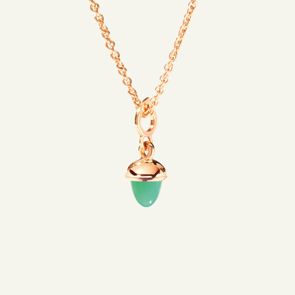 Der miniMIKADO Anhänger präsentiert einen zarten, grünen Chrysopras in der charakteristischen kegelförmigen Form und charmant-zierlicher Größe, gefasst in 18 Karat Gold. Vielseitig tragbar, kann der miniMIKADO Anhänger an einer feinen Kette getragen oder mit weiteren MIKADO Anhängern kombiniert werden. Ideal zum Mix & Match, Sammeln und Verschenken.