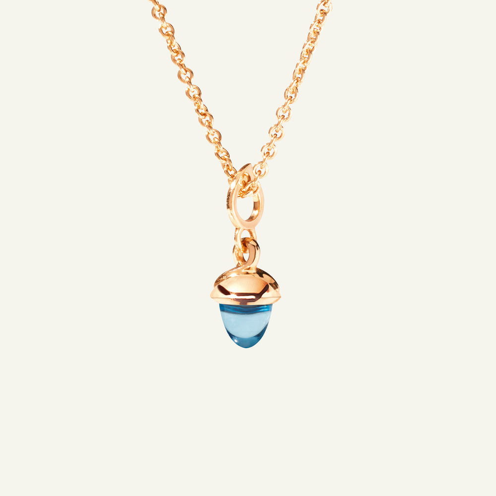 Der miniMIKADO Anhänger präsentiert einen zarten, leuchtend blauen Swiss-Topas in der charakteristischen kegelförmigen Form und charmant-zierlicher Größe, gefasst in 18 Karat Gold. Vielseitig tragbar, kann der miniMIKADO Anhänger an einer feinen Kette getragen oder mit weiteren MIKADO Anhängern kombiniert werden. Ideal zum Mix & Match, Sammeln und Verschenken.