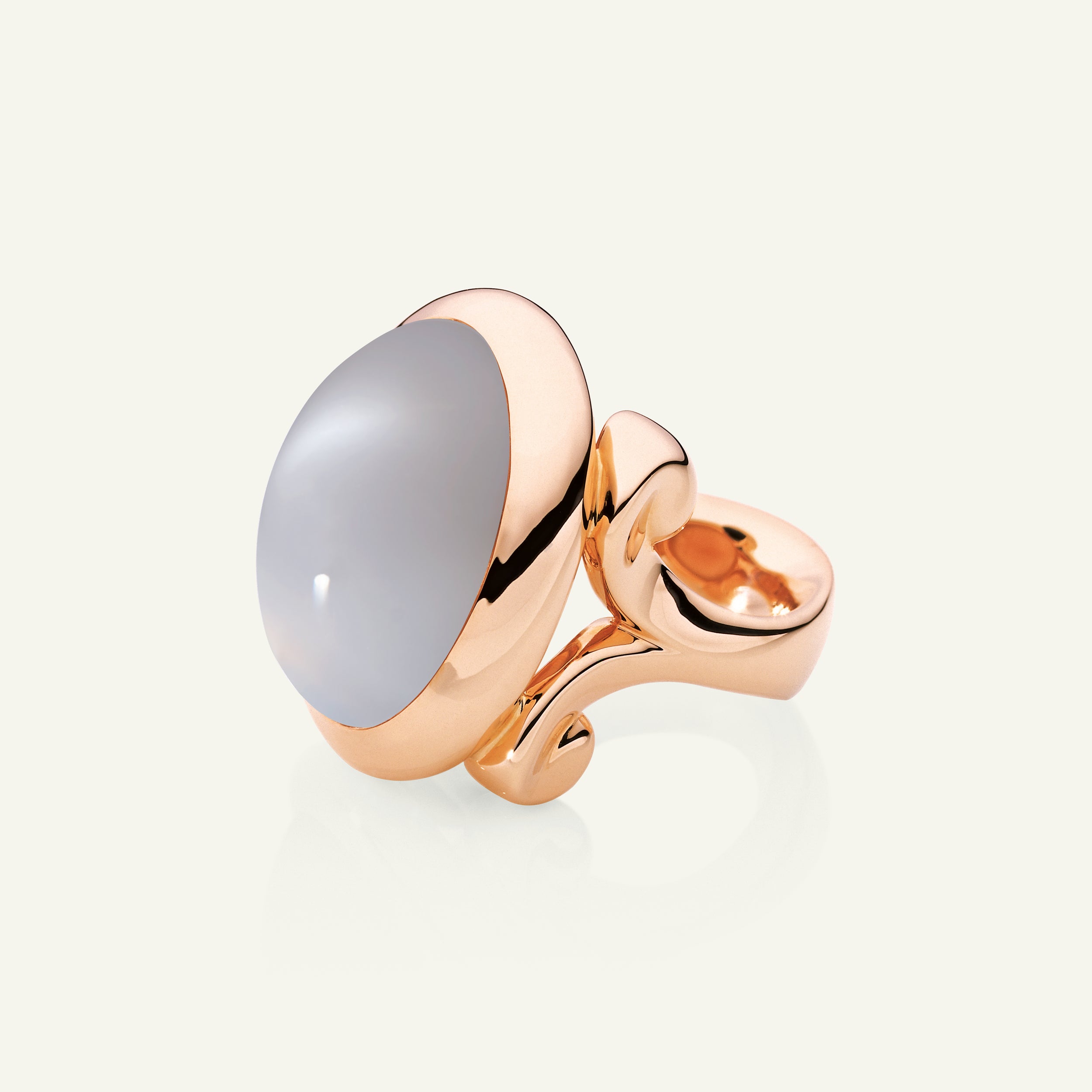 Der HIPPIE GLAM Large Ring präsentiert einen Grauen Mondstein im Cabochon-Schliff, gefasst in 18 Karat Gold. Seine organische Form verleiht eine lässige Eleganz. Vielseitig kombinierbar, lässt sich dieser Ring im Stack mit anderen tragen oder solo als modernes Statement inszenieren.